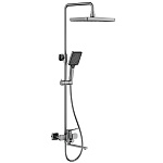 Комплектациясмеситель, душевая стойка, верхний душ, душевая лейка, душевой шланг, держатель для душевой лейки, настенный держатель, отражатели, эксцентрики