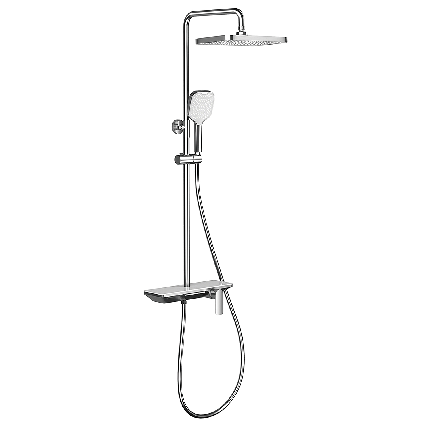 ХарактеристикиМатериал: полка-пластик, верхняя часть полки – стекло / форсунки душевой лейки и верхнего душа – силикон.
