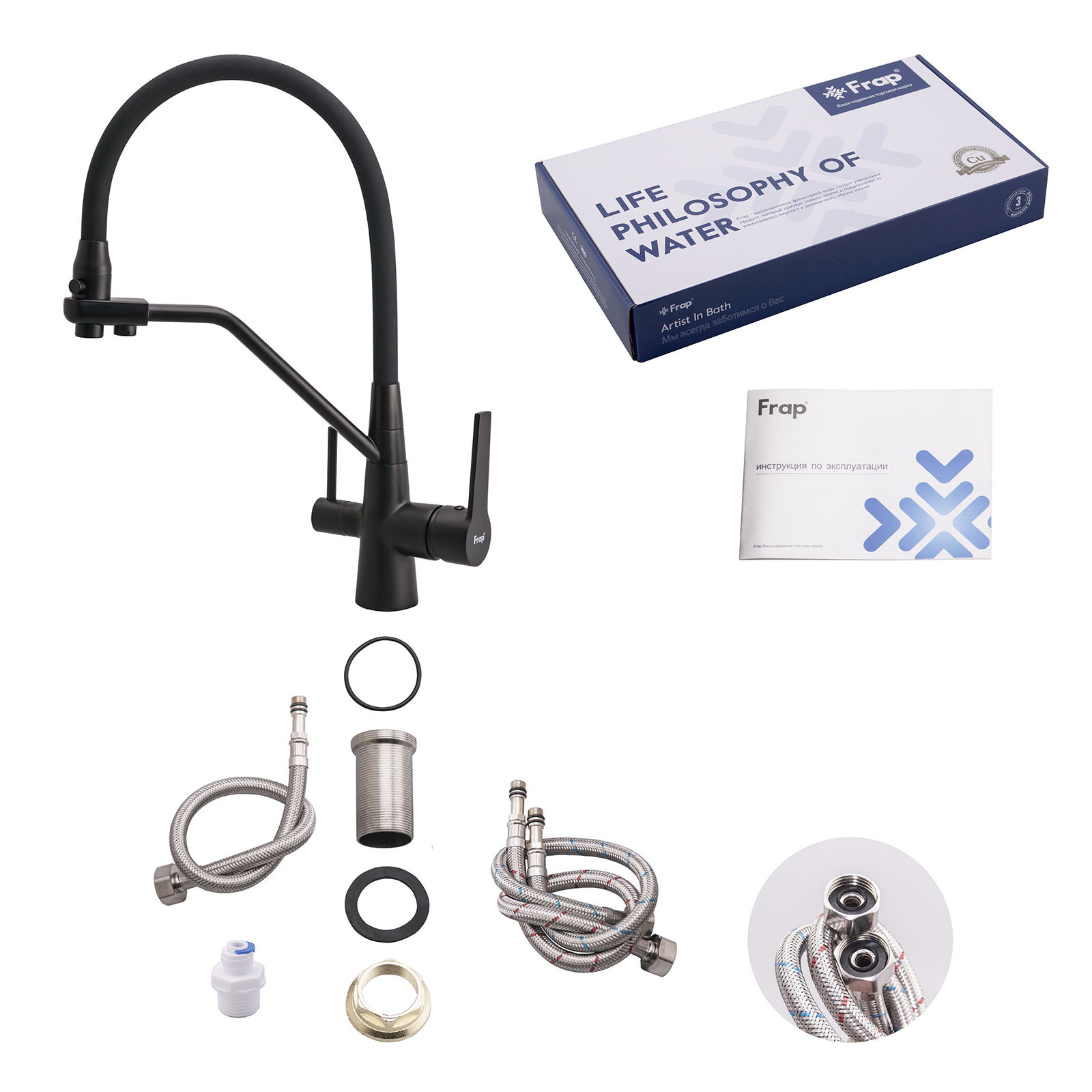 Комплектация товара Смеситель для кухни со встроенным фильтром (краном) под питьевую воду Frap F4374-6 зависит от конкретной поставки и может меняться поставщиком без предварительного уведомления!