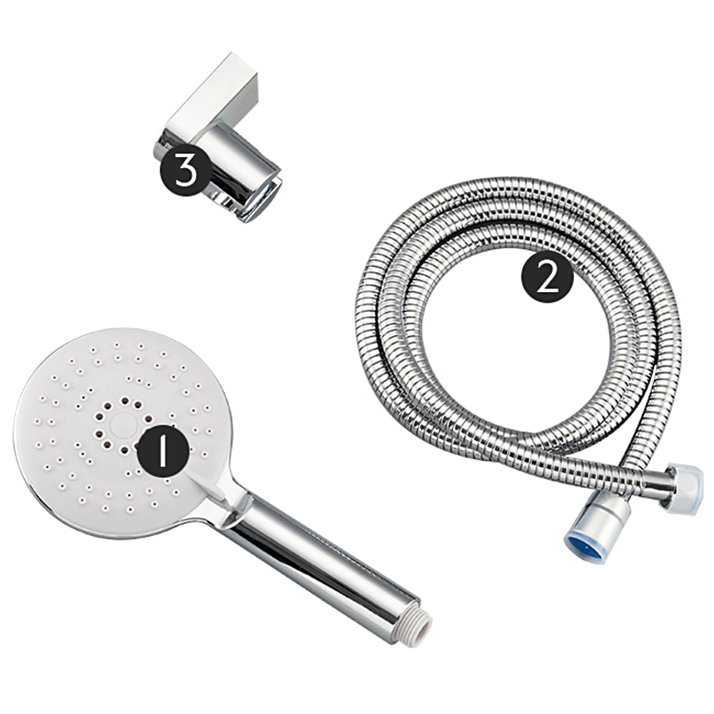 Комплектациядушевая лейка, душевой шланг, держатель для душевой лейки, настенный держатель