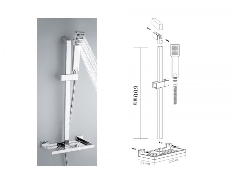 Комплектациядушевая штанга, душевая лейка, душевой шланг, держатель для душевой лейки, настенный держатель, мыльница