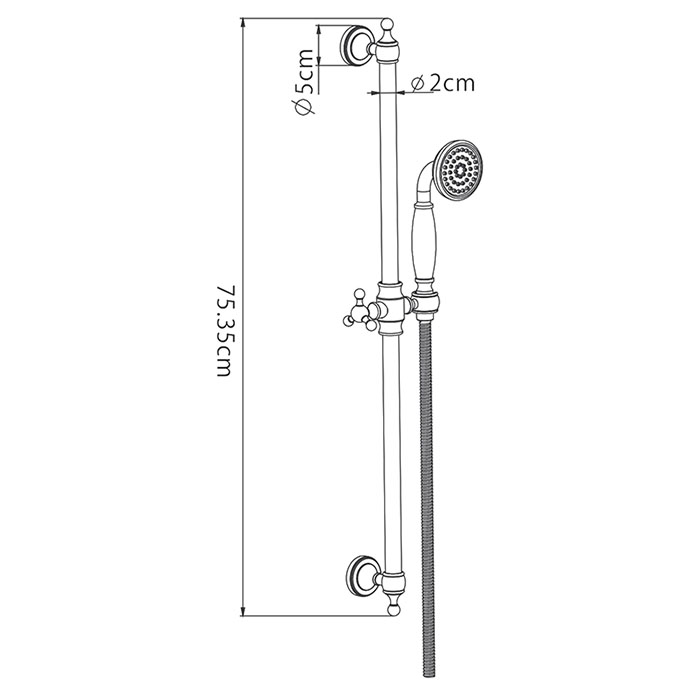 Комплектациядушевая штанга, душевая лейка, душевой шланг, держатель для душевой лейки, настенный держатель