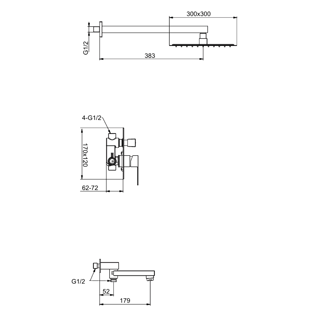 Форма верхнего душаквадратная