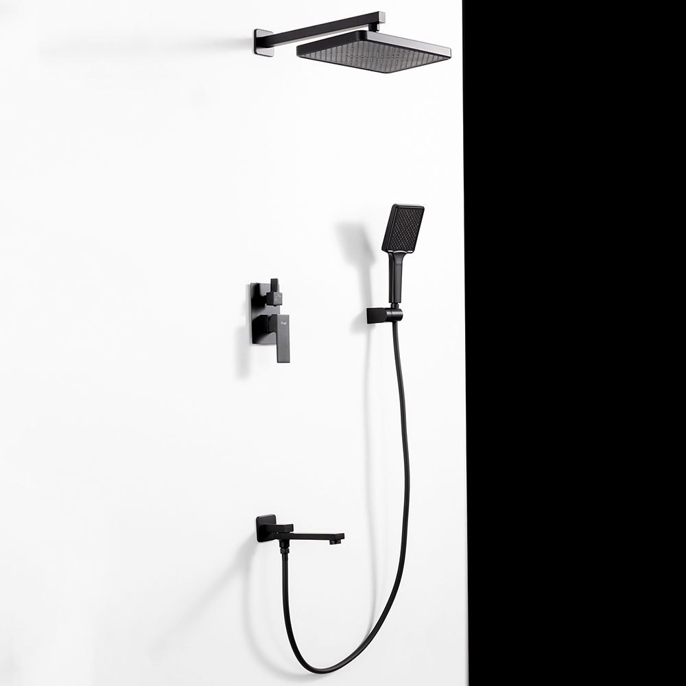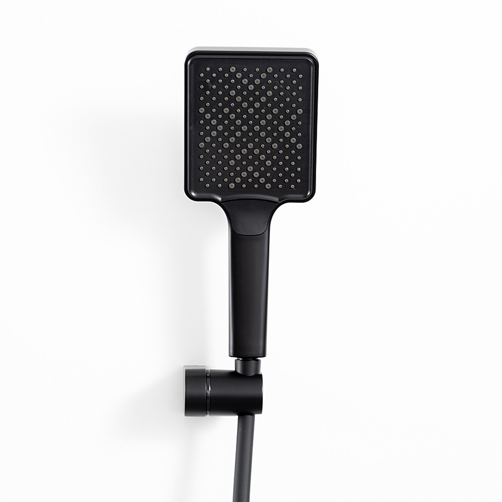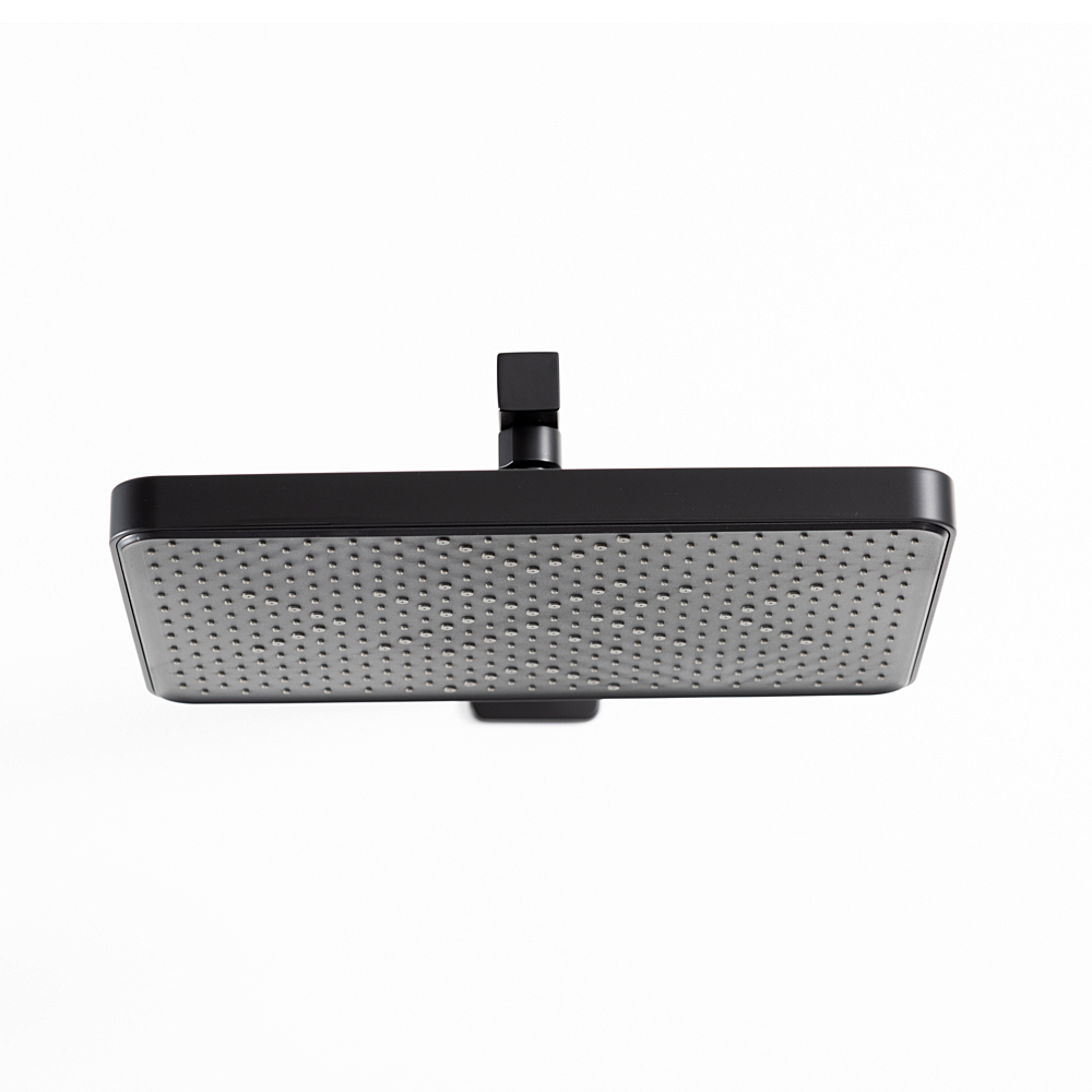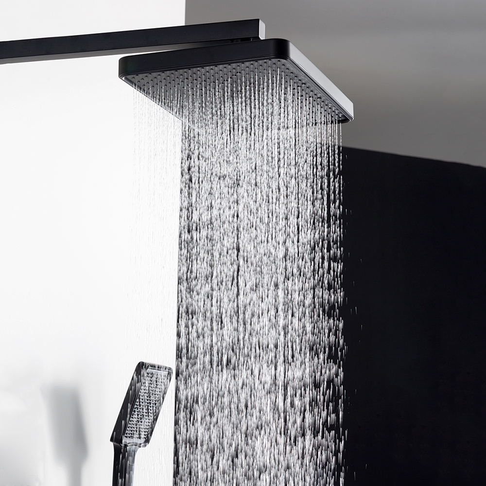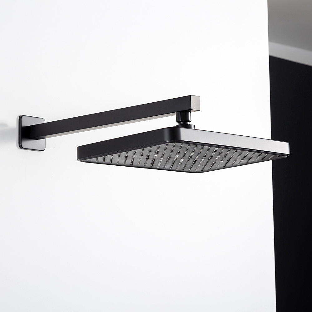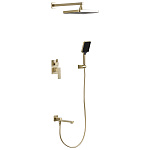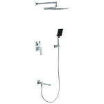 Комплектацияверхний душ, держатель для душевой лейки, душевая лейка, душевой шланг, излив, кронштейн, наружная часть смесителя, смеситель