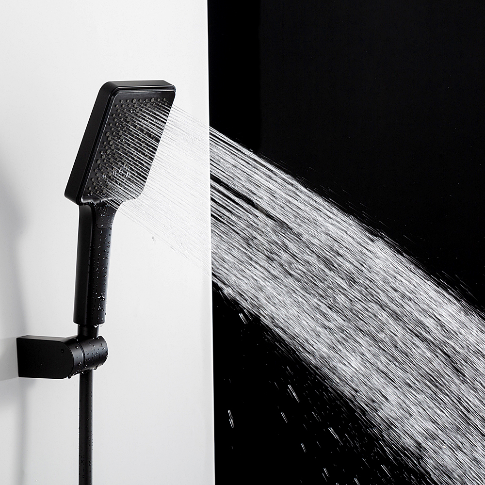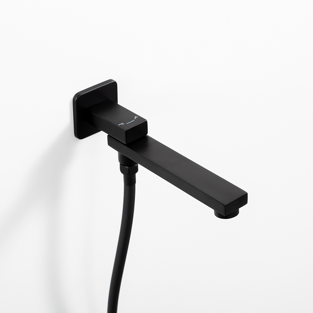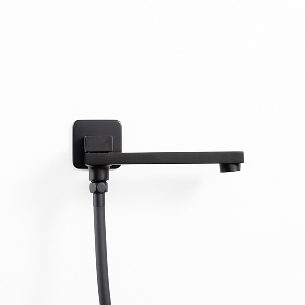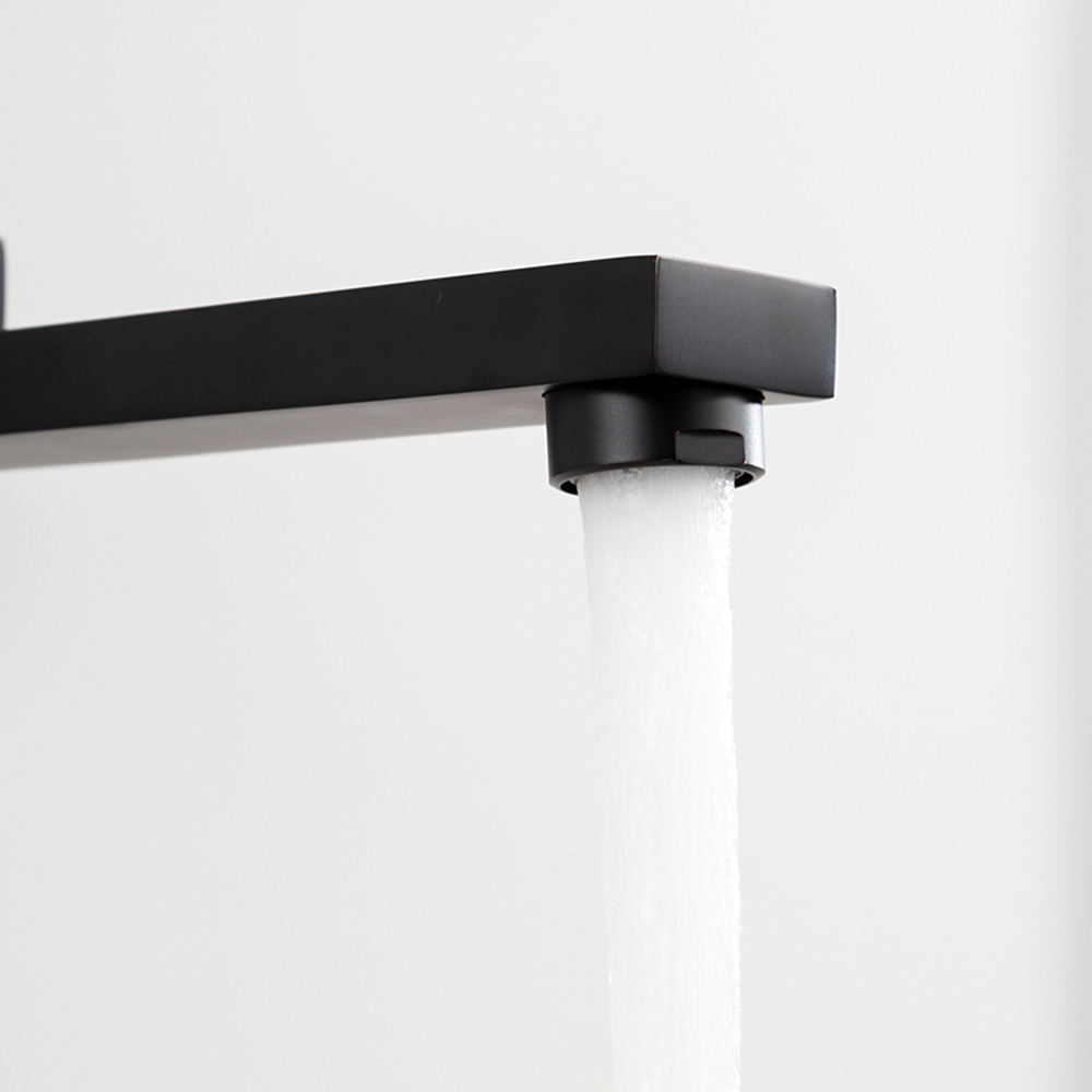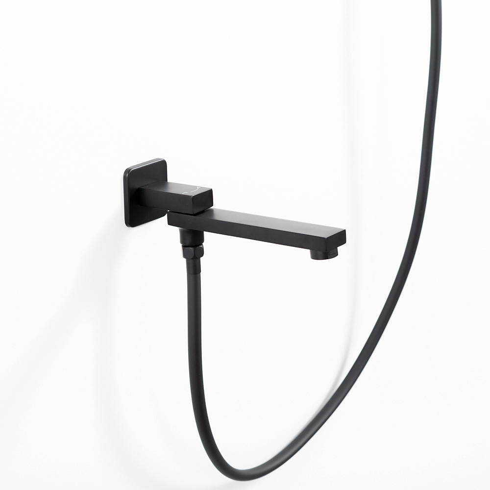 Комплектацияверхний душ, держатель для душевой лейки, душевая лейка, душевой шланг, излив, кронштейн, наружная часть смесителя, смеситель