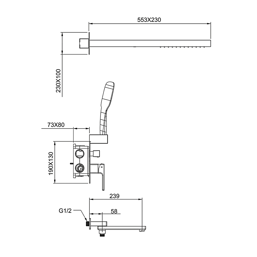 Размер верхнего душа, см55.3x23