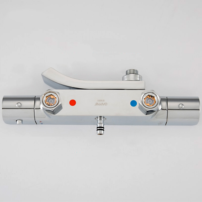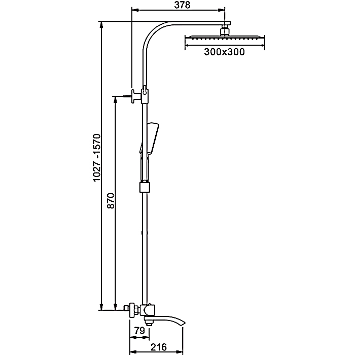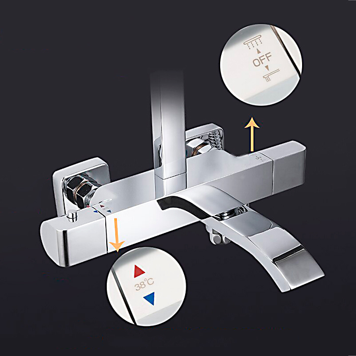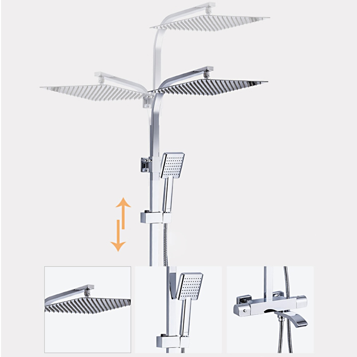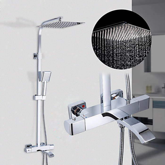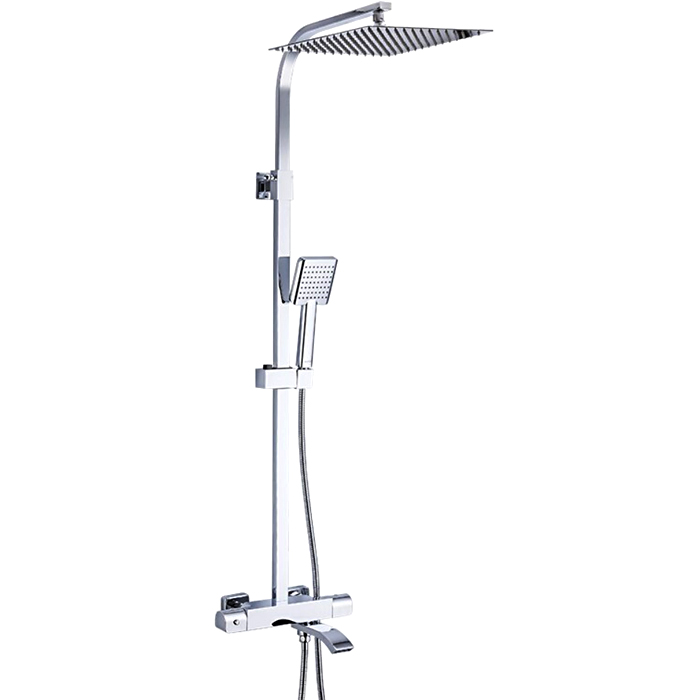 Комплектациясмеситель, душевая стойка, верхний душ, душевая лейка, душевой шланг, держатель для душевой лейки, настенный держатель, отражатели, эксцентрики