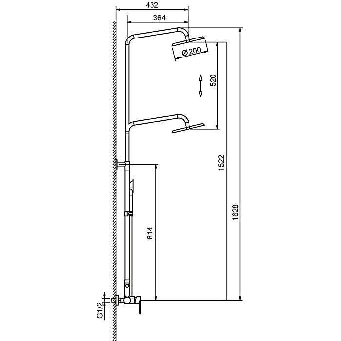 Вылет верхнего душа, см35