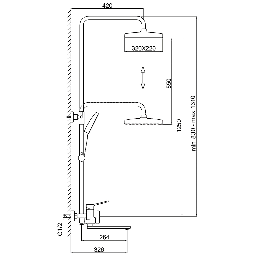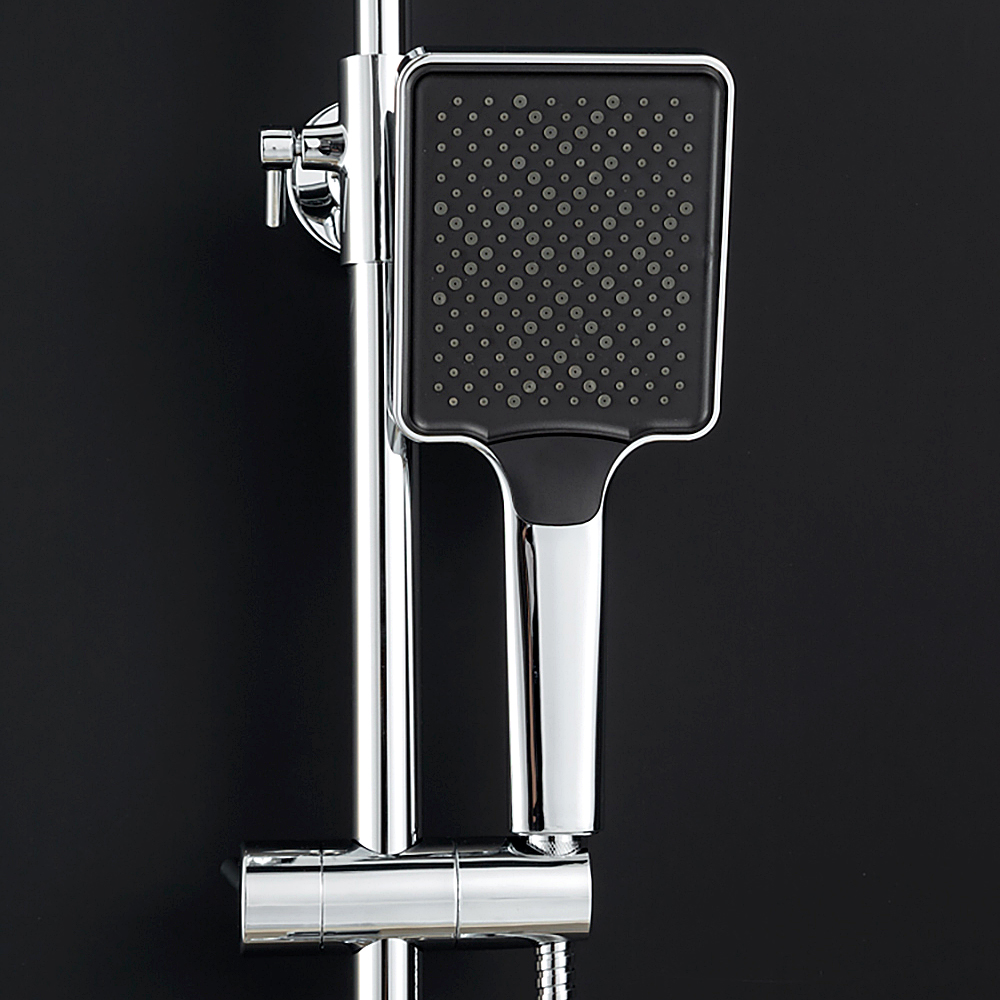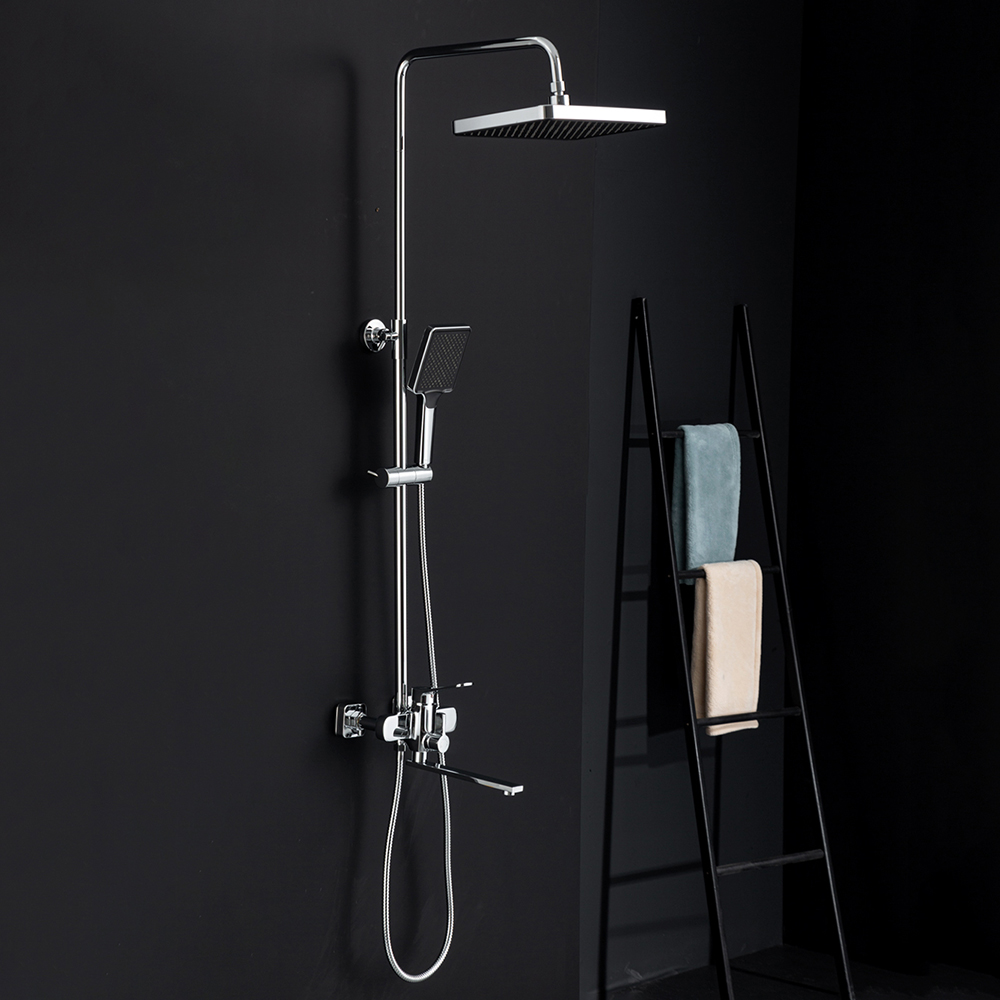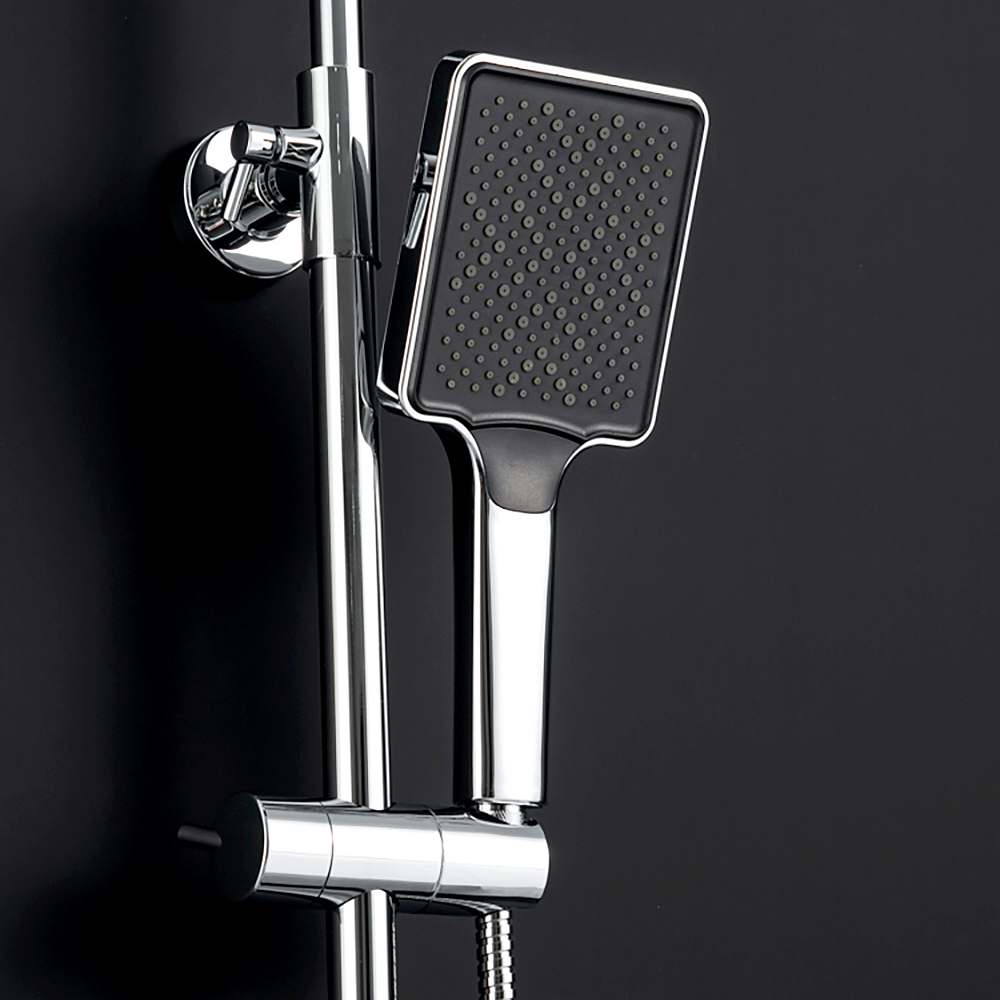 Комплектациясмеситель, душевая стойка, верхний душ, душевая лейка, душевой шланг, держатель для душевой лейки, настенный держатель, отражатели, эксцентрики