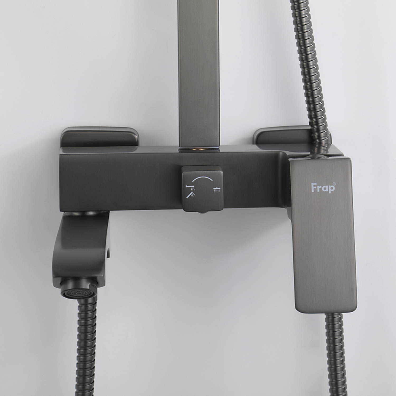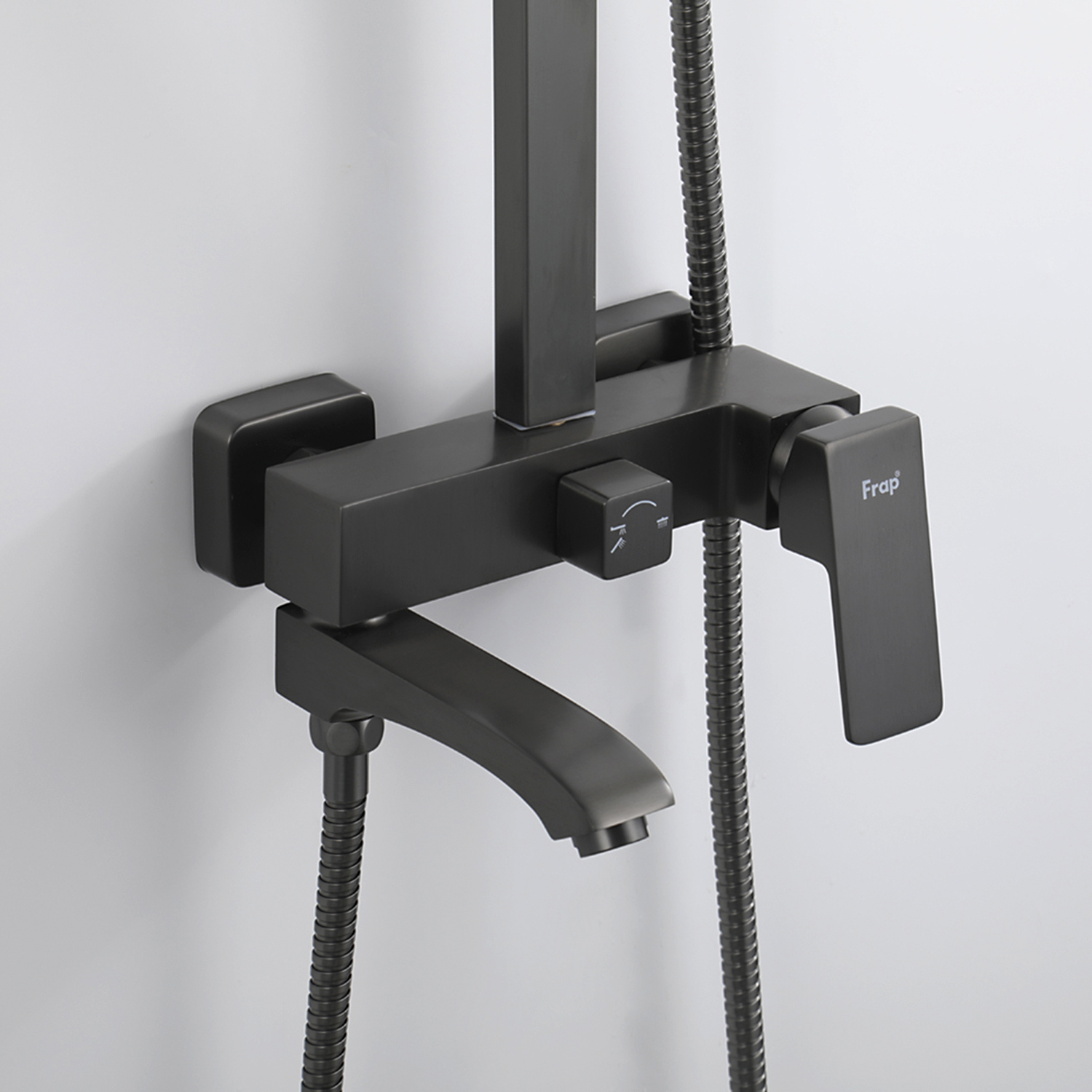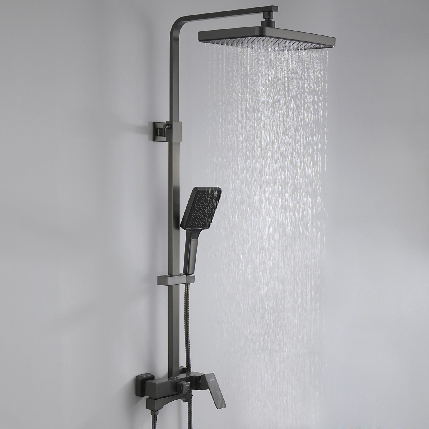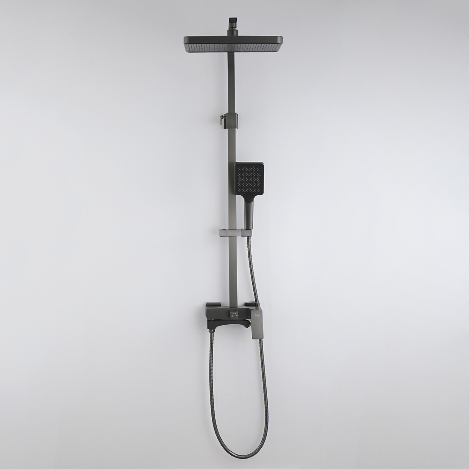 Комплектациясмеситель, душевая стойка, верхний душ, душевая лейка, душевой шланг, держатель для душевой лейки, настенный держатель, отражатели, эксцентрики