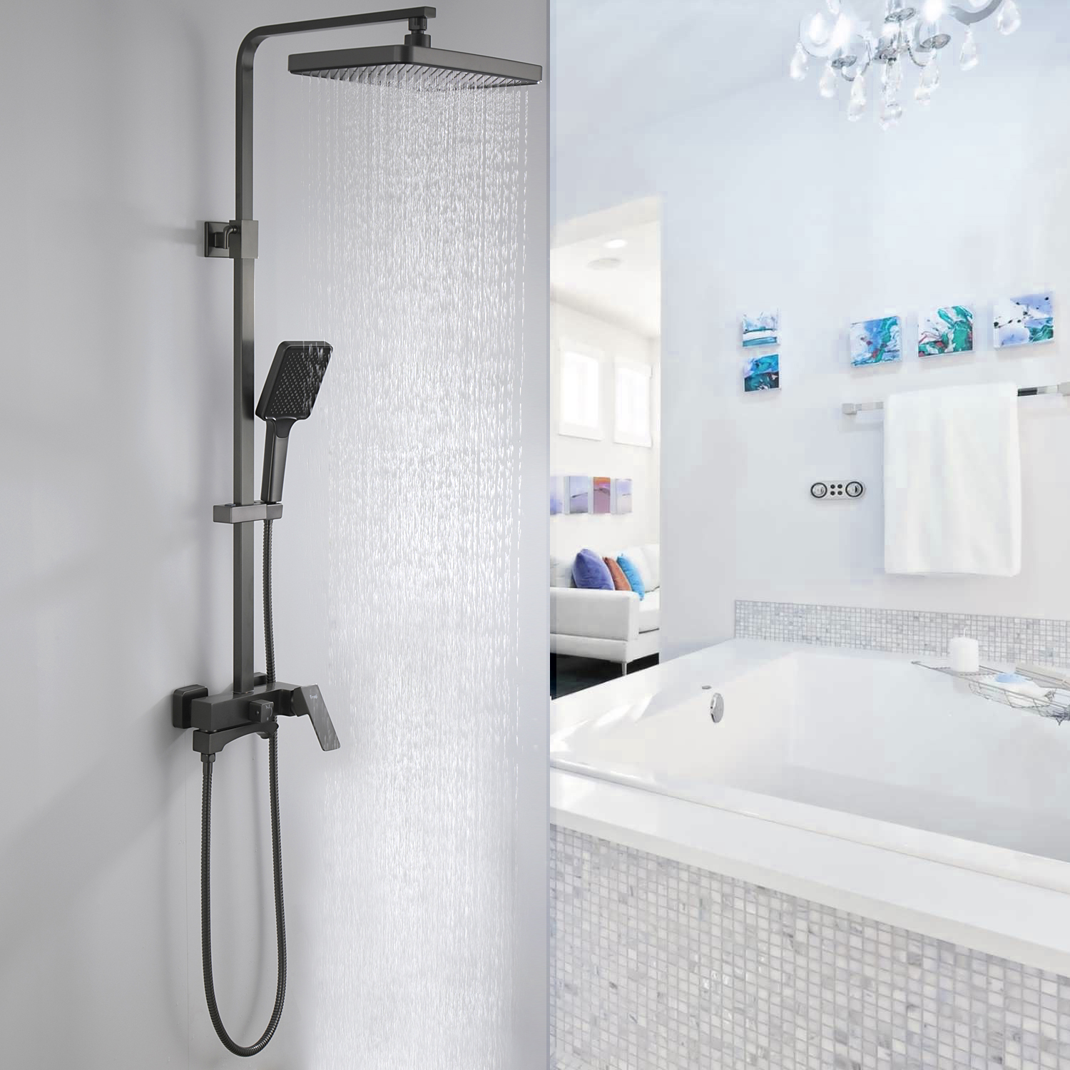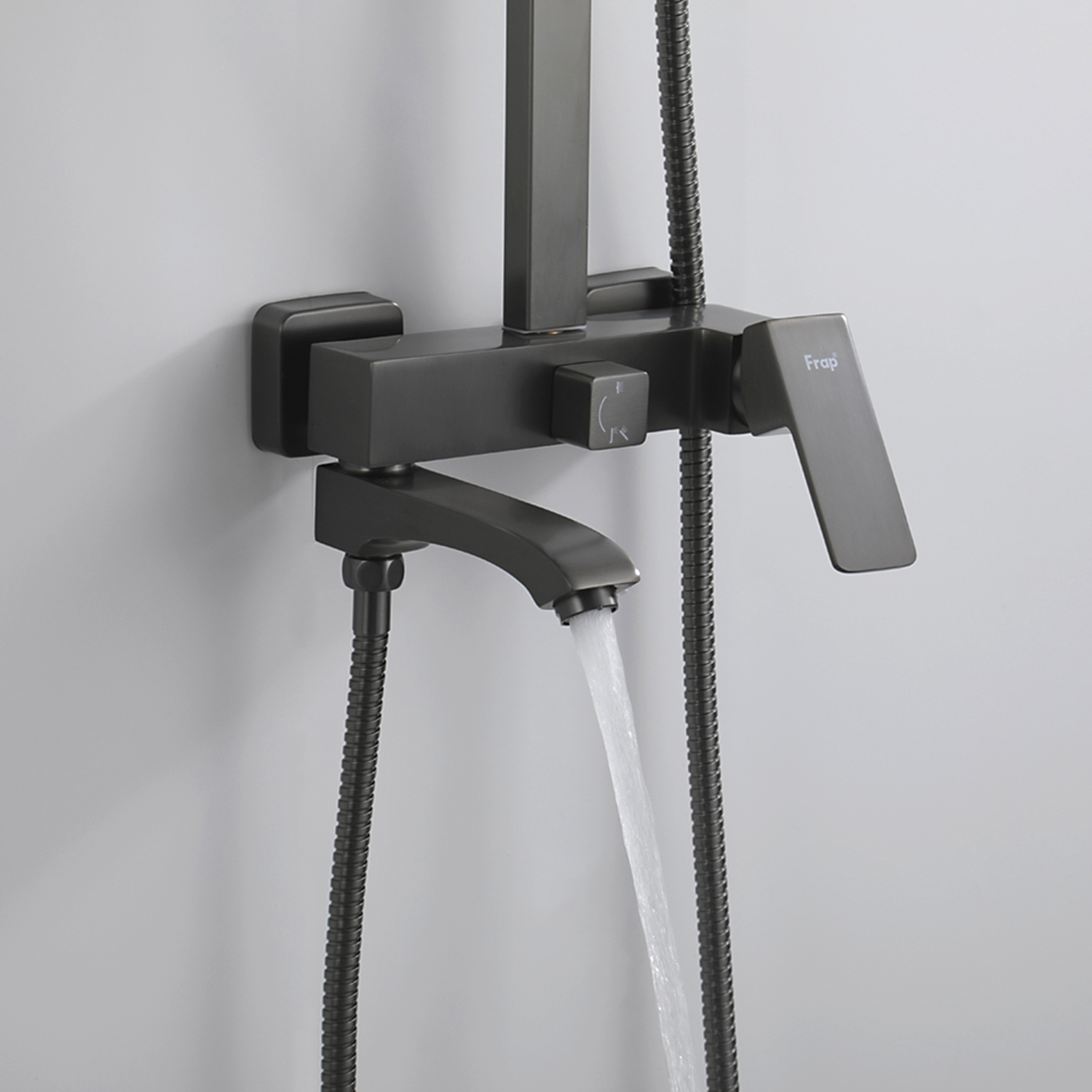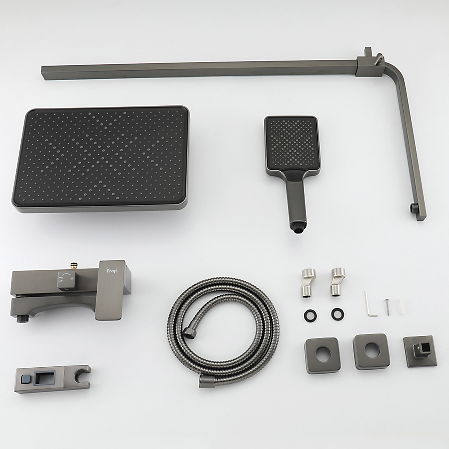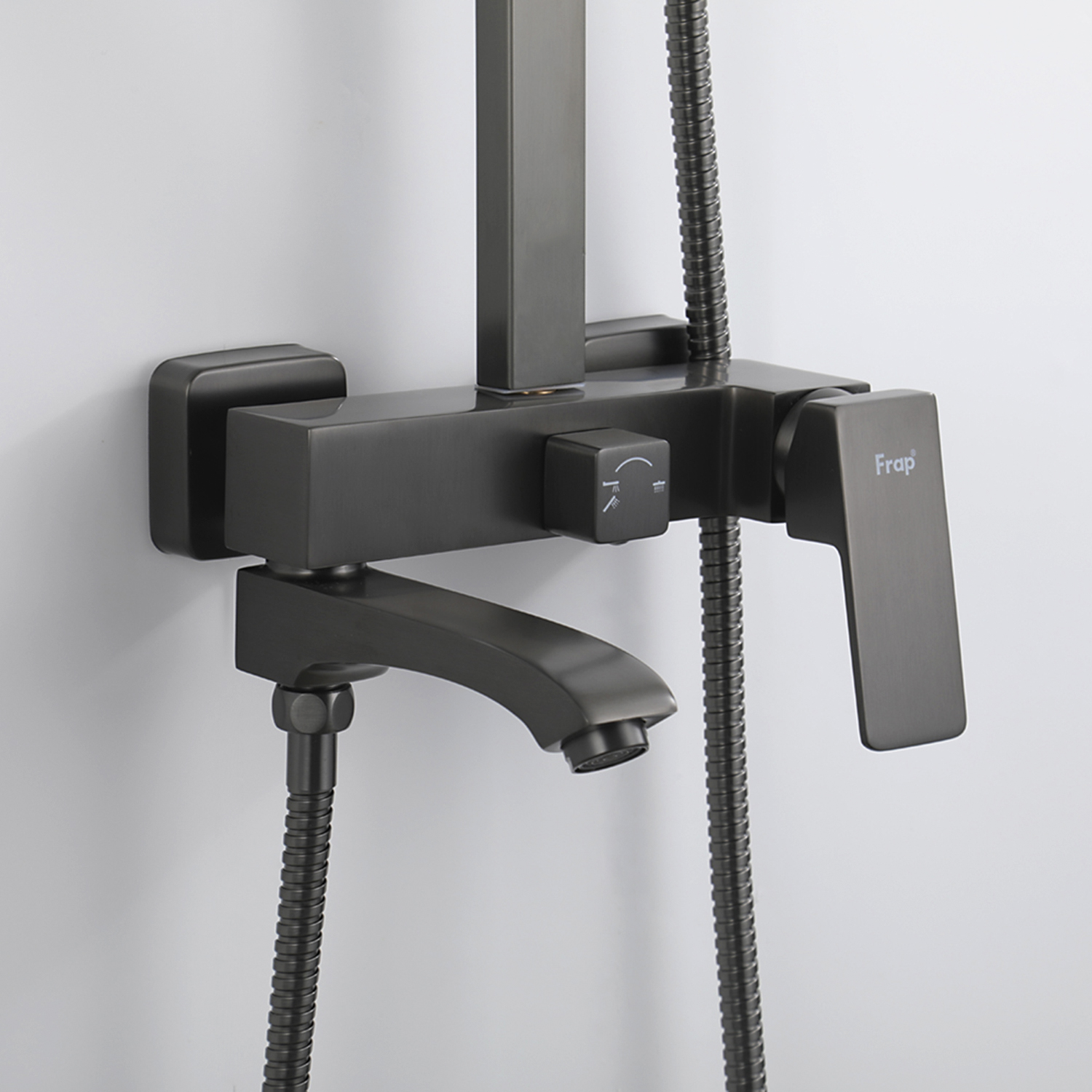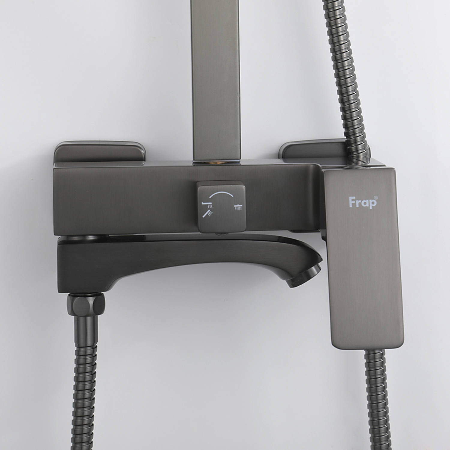 Комплектациясмеситель, душевая стойка, верхний душ, душевая лейка, душевой шланг, держатель для душевой лейки, настенный держатель, отражатели, эксцентрики