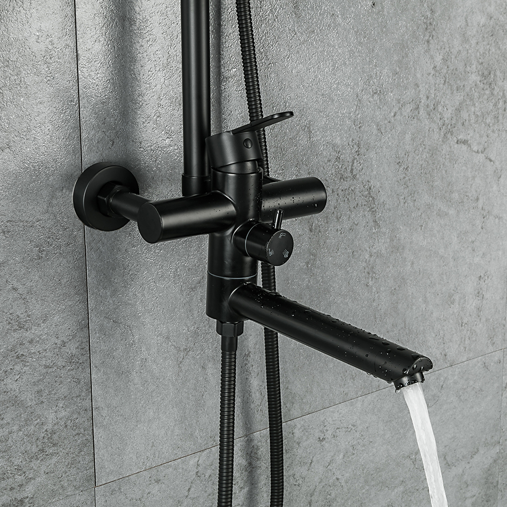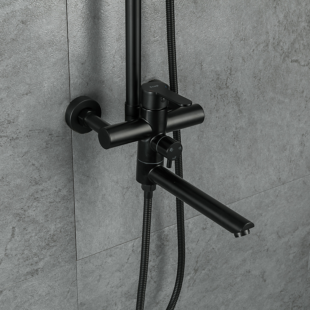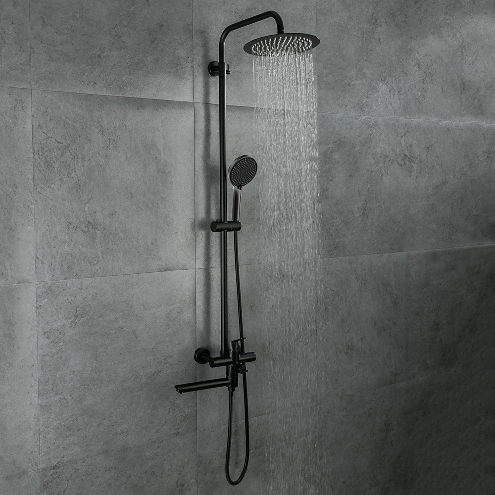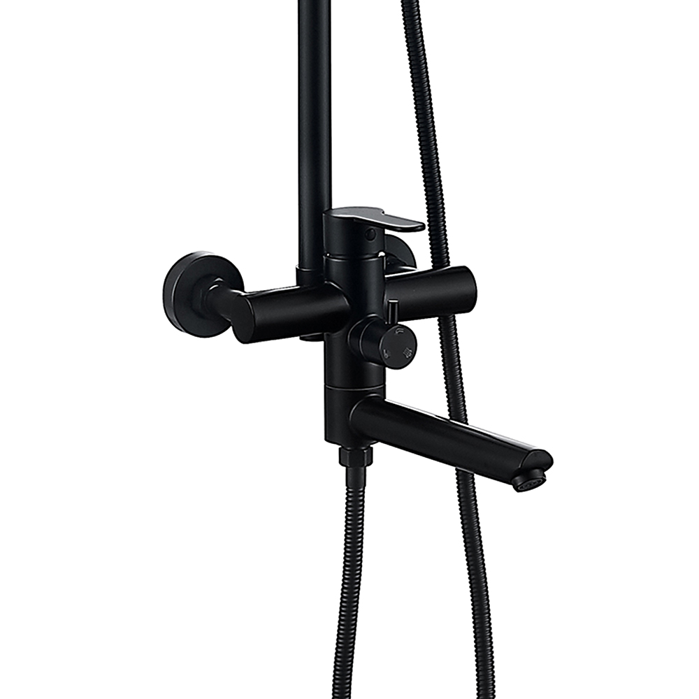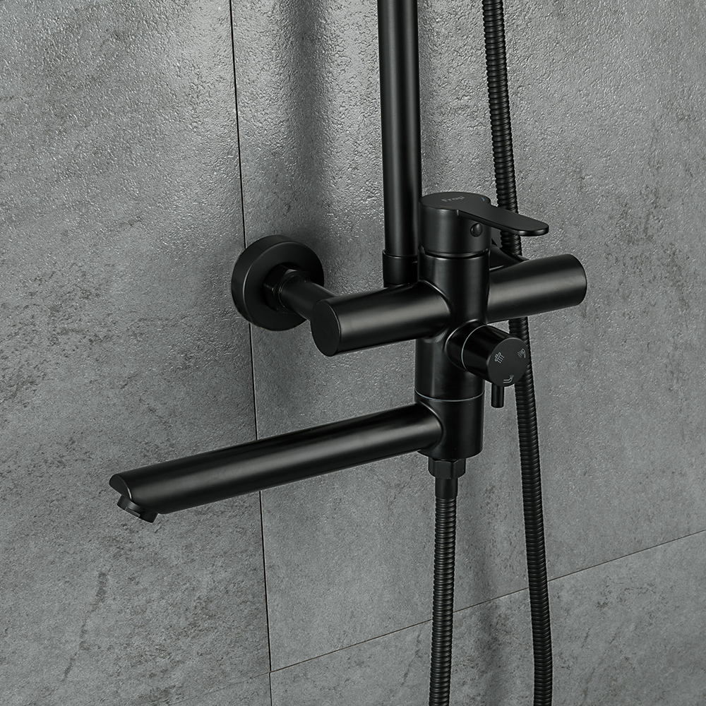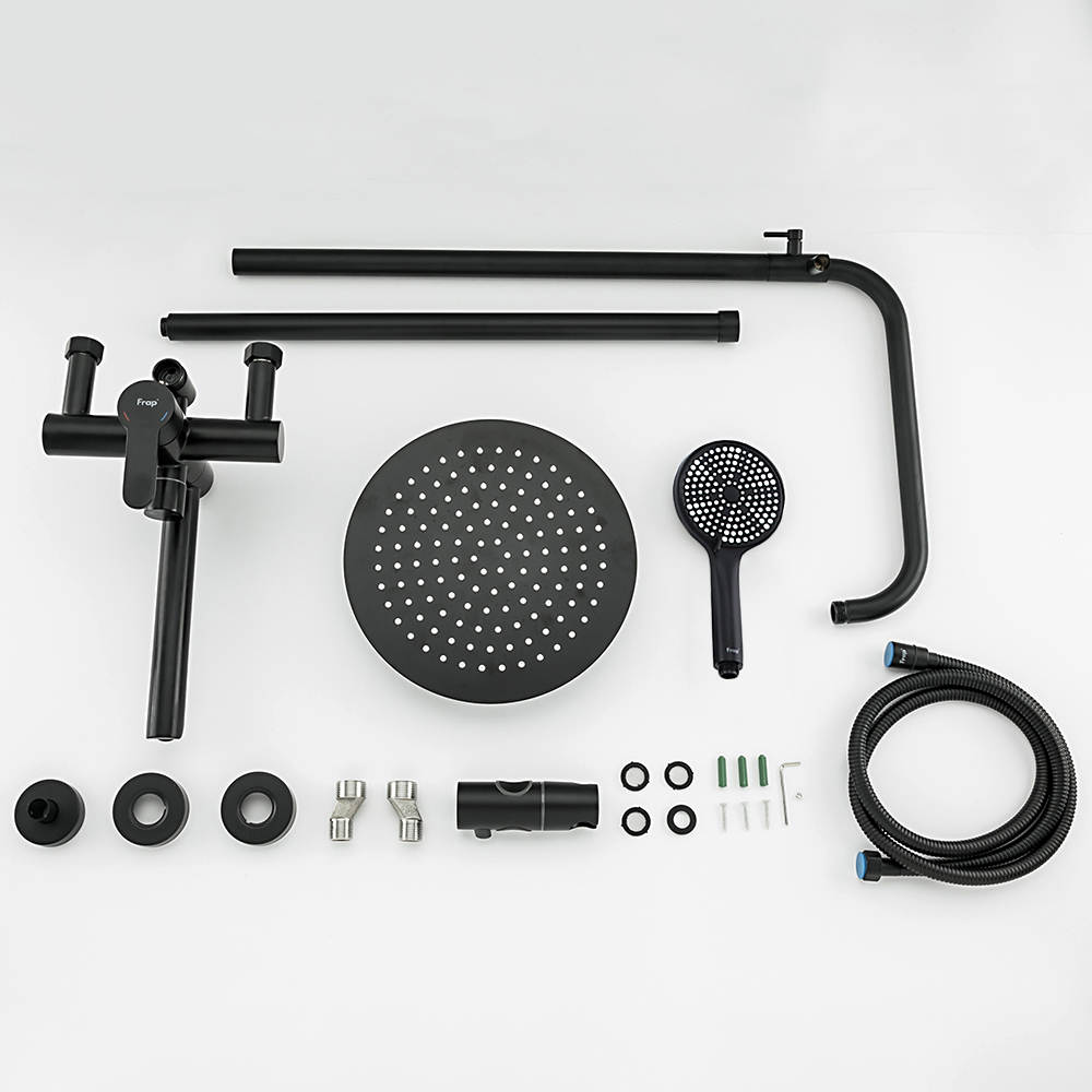 Комплектациясмеситель, душевая стойка, верхний душ, душевая лейка, душевой шланг, держатель для душевой лейки, настенный держатель, отражатели, эксцентрики