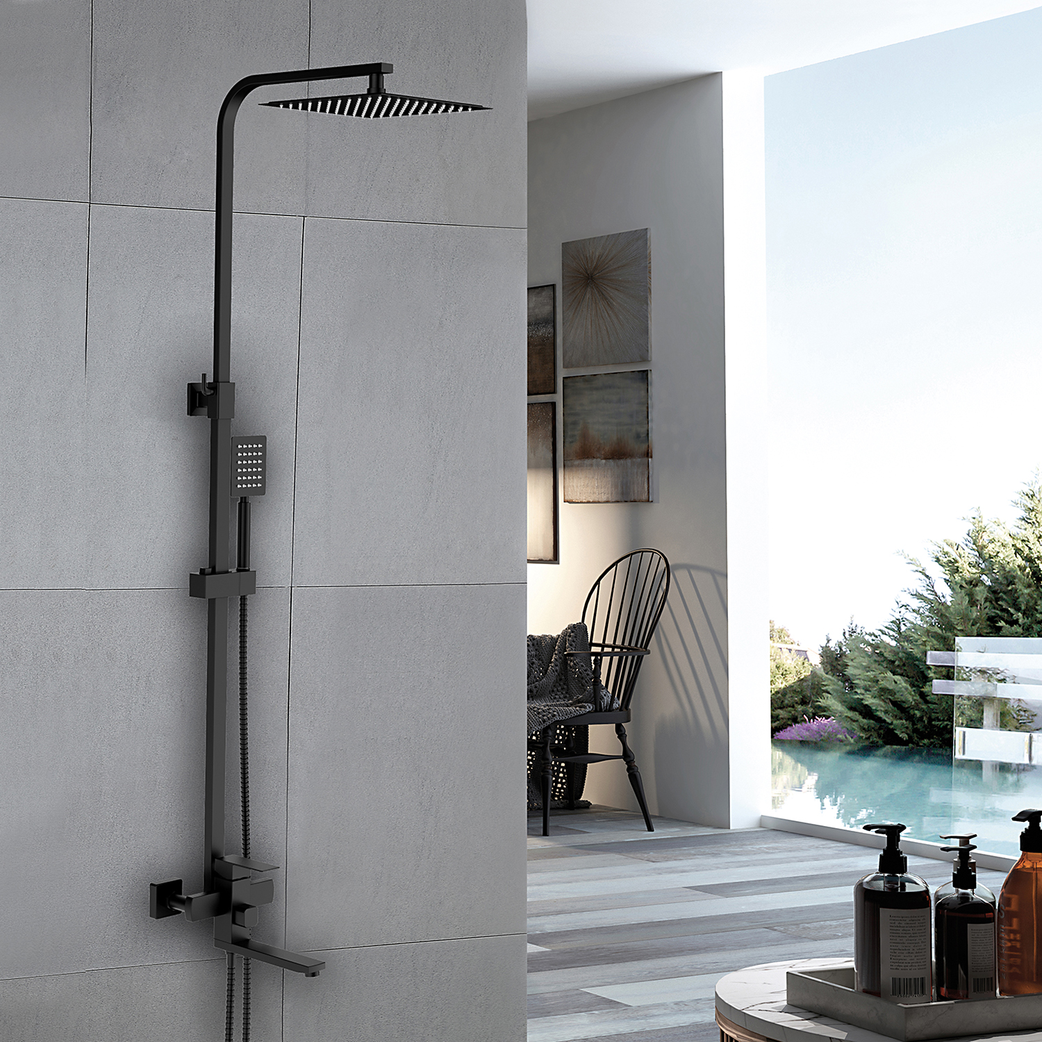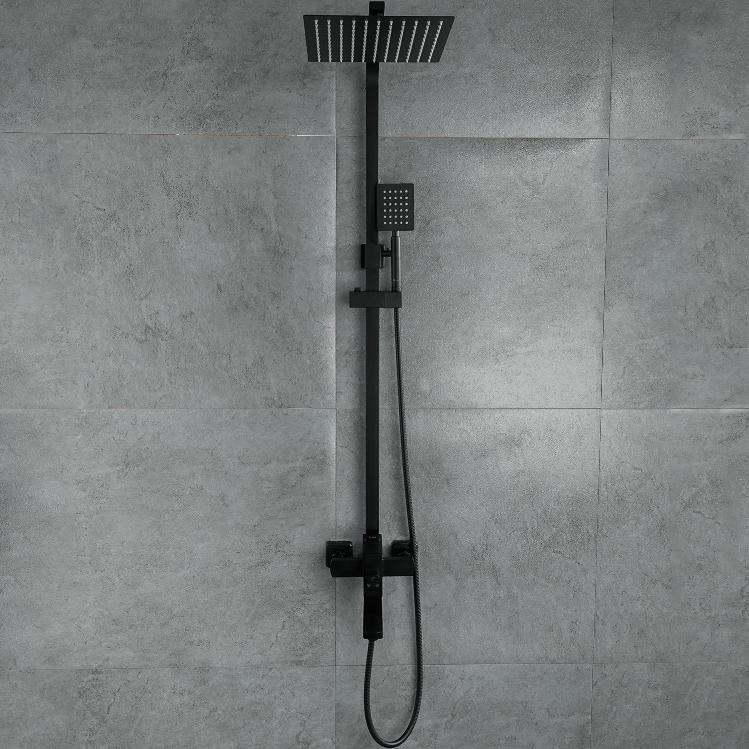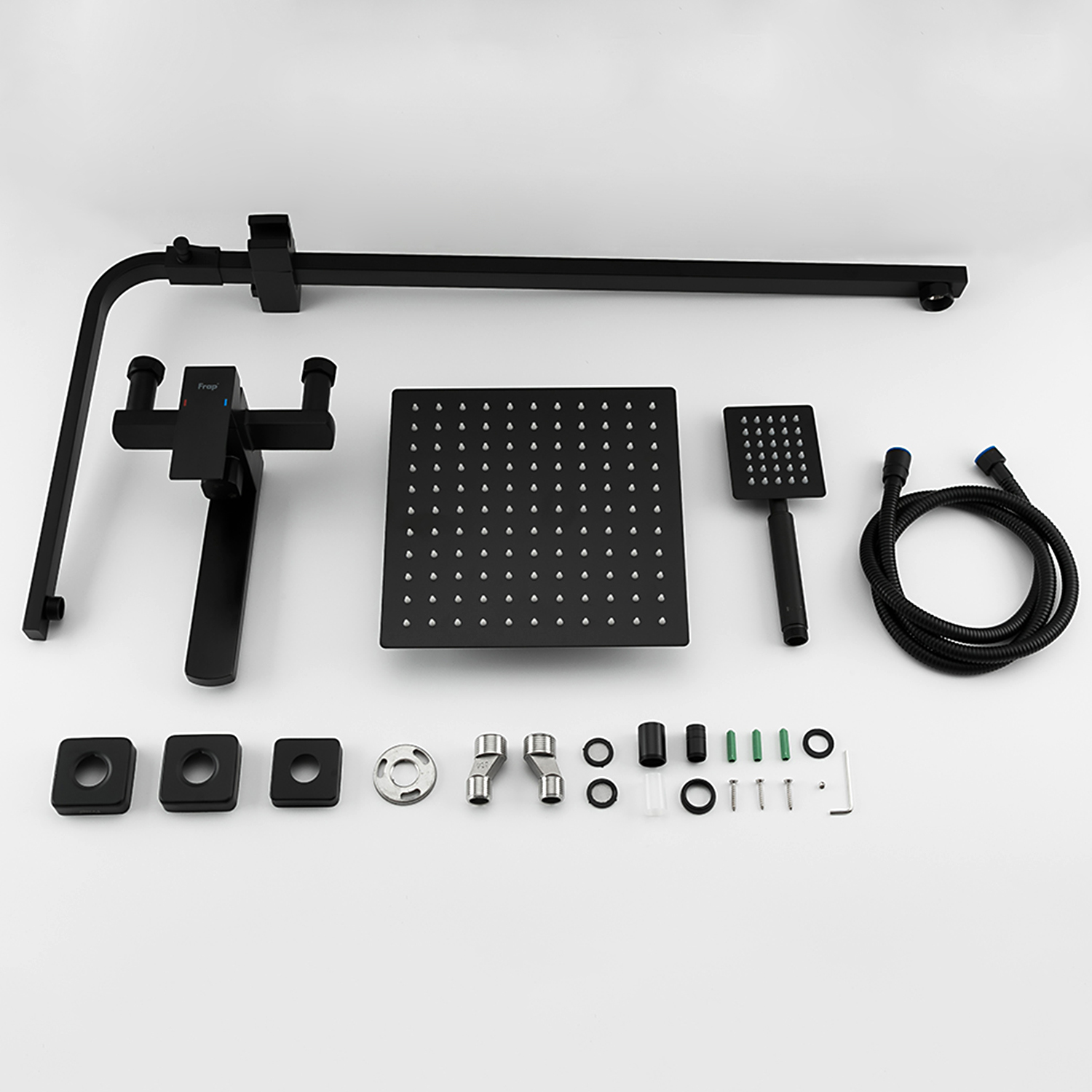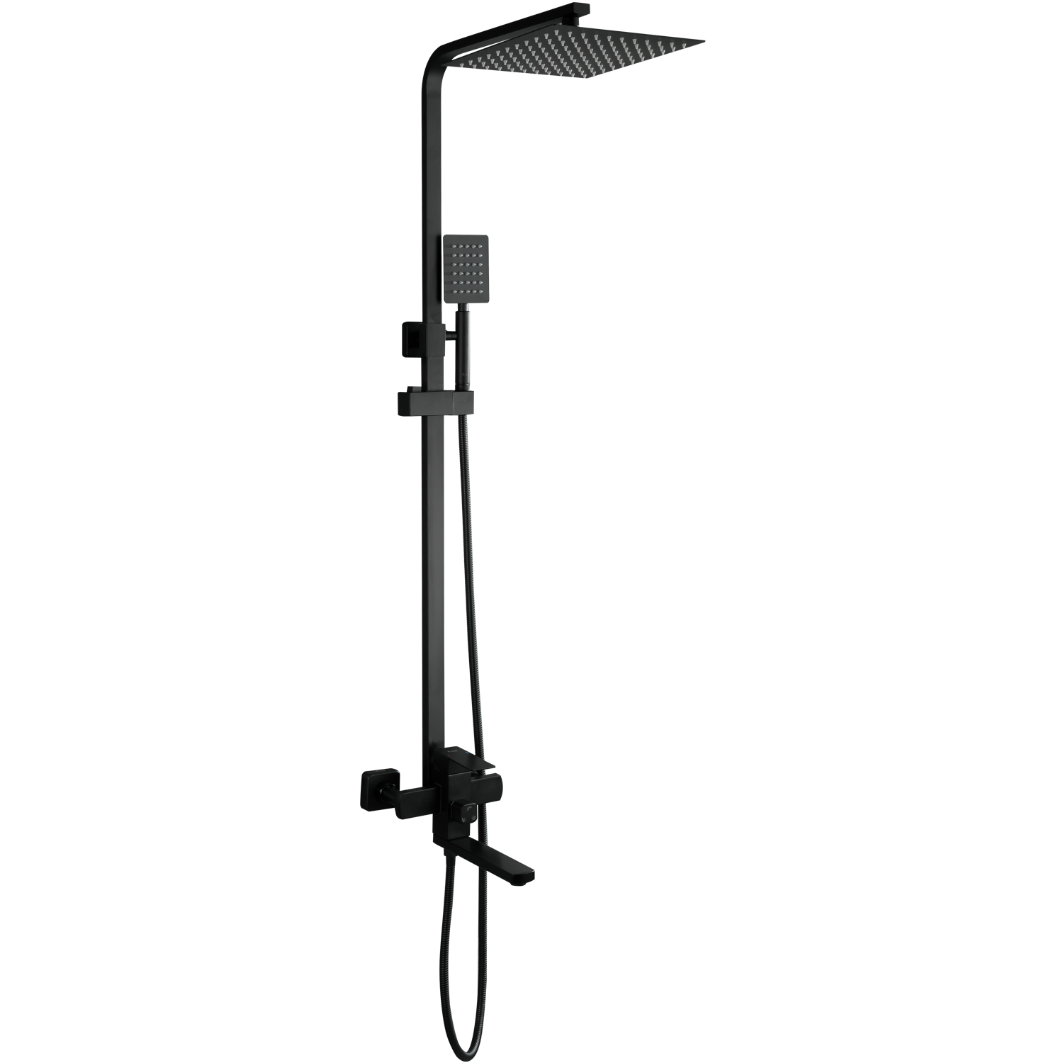 Комплектациясмеситель, душевая стойка, верхний душ, душевая лейка, душевой шланг, держатель для душевой лейки, настенный держатель, отражатели, эксцентрики