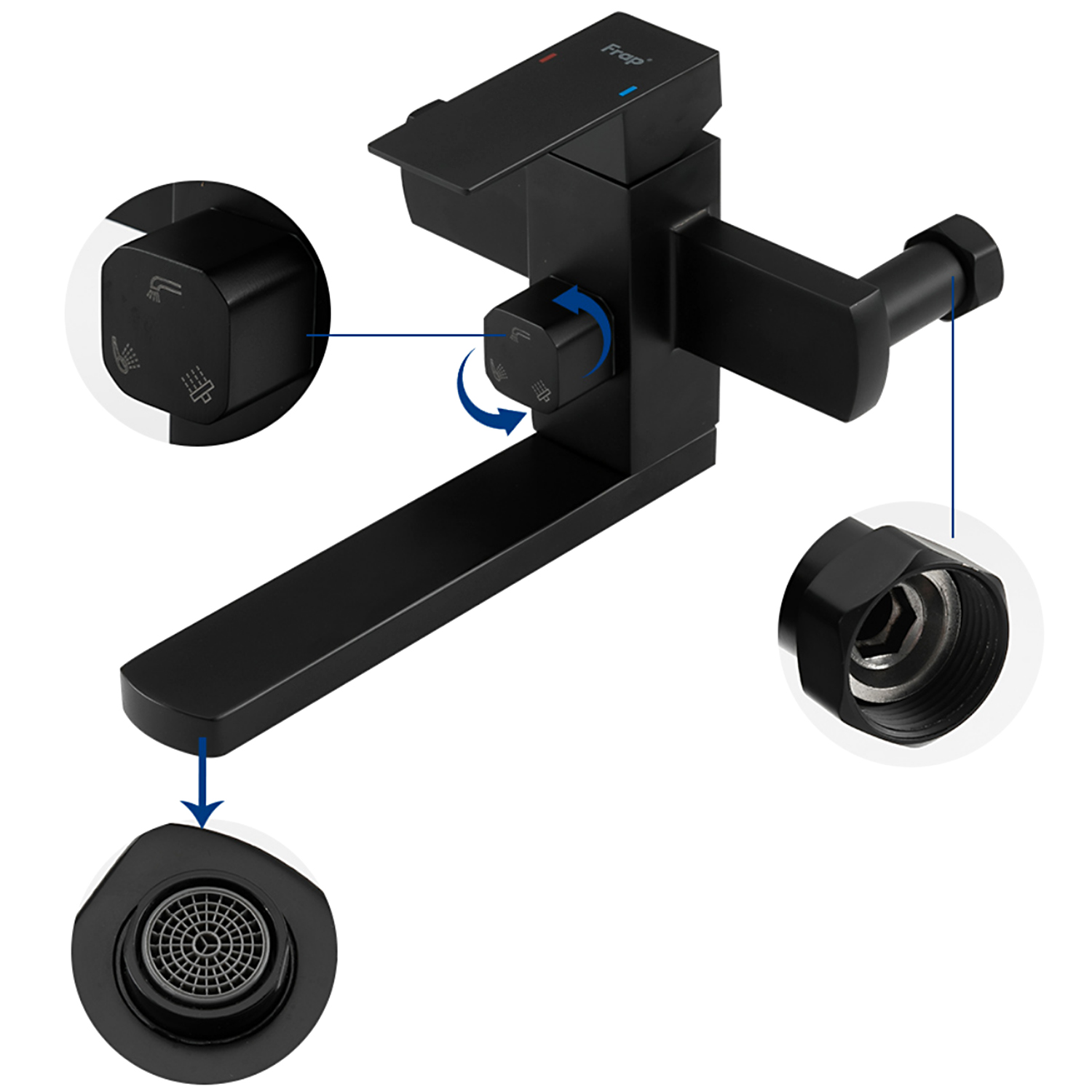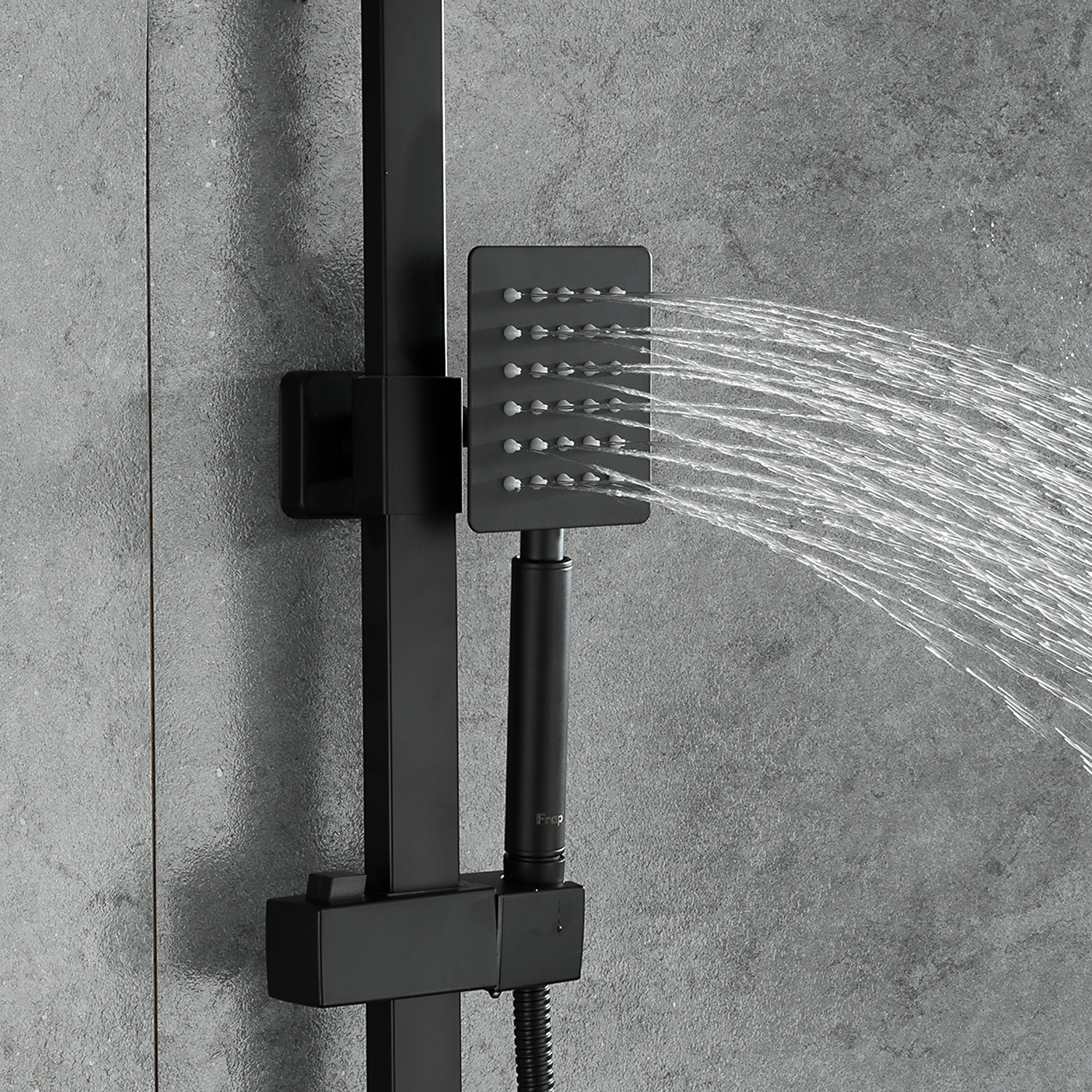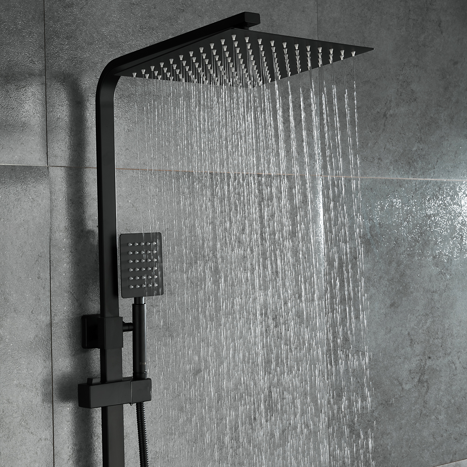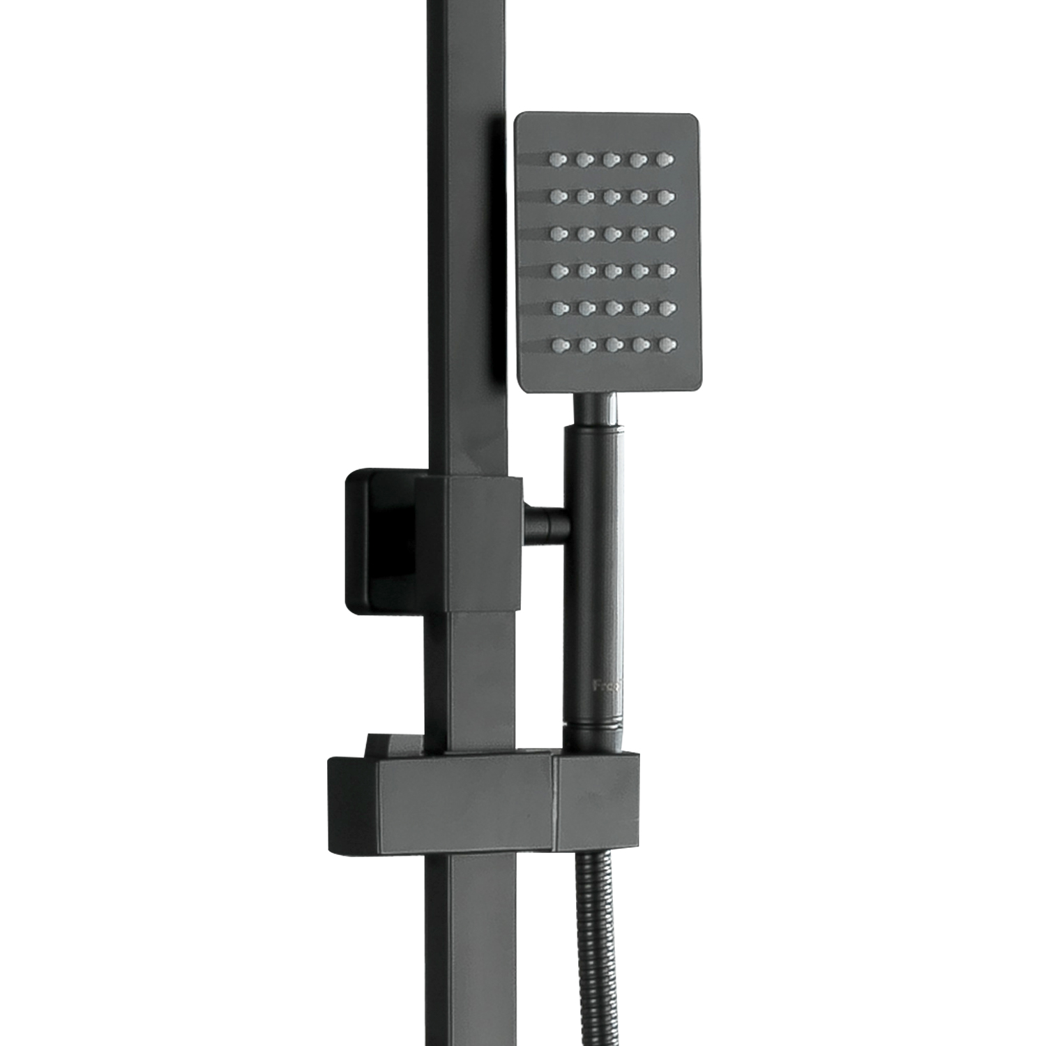 Комплектациясмеситель, душевая стойка, верхний душ, душевая лейка, душевой шланг, держатель для душевой лейки, настенный держатель, отражатели, эксцентрики