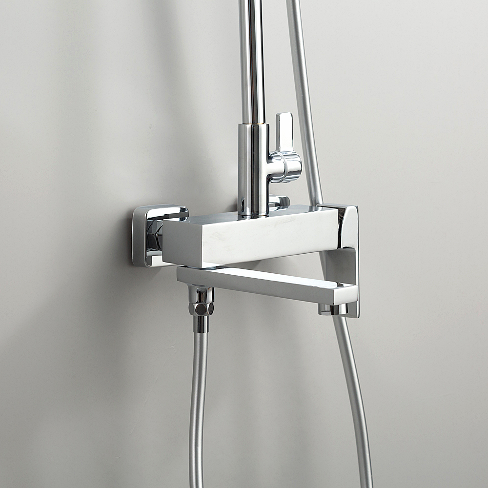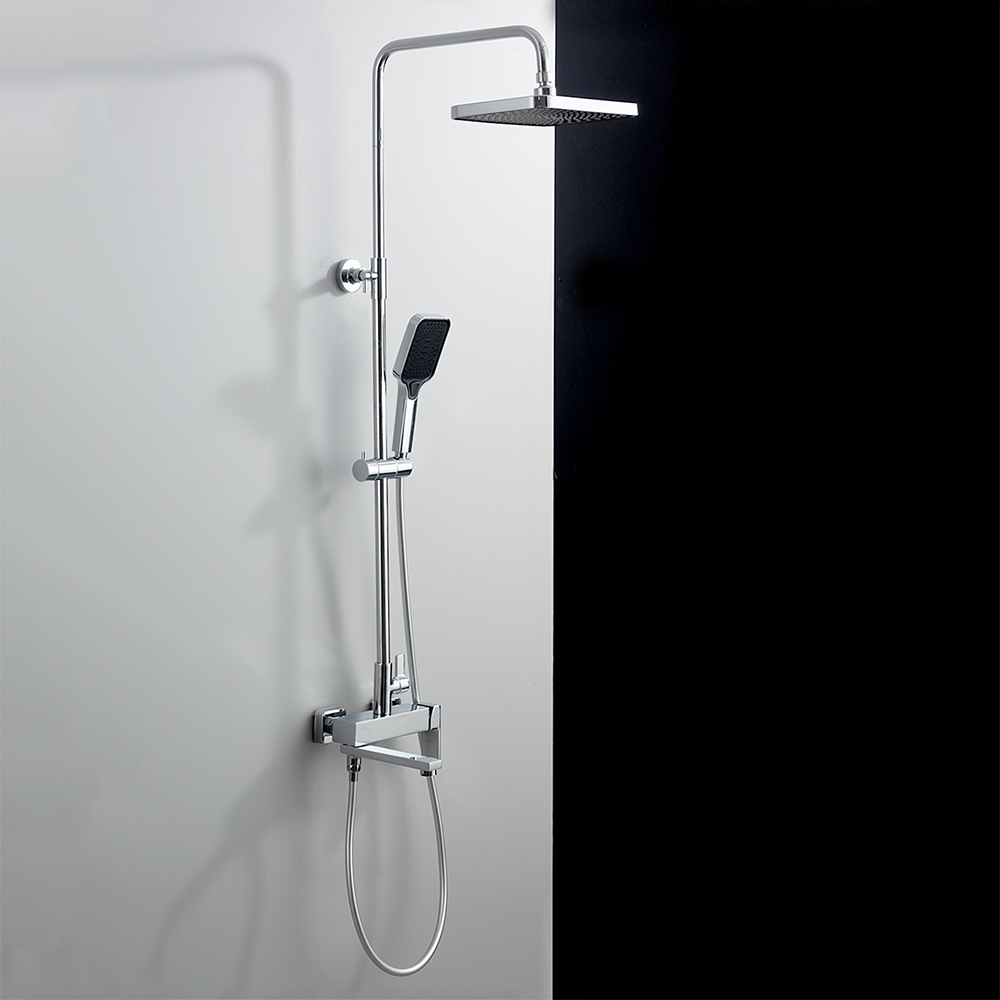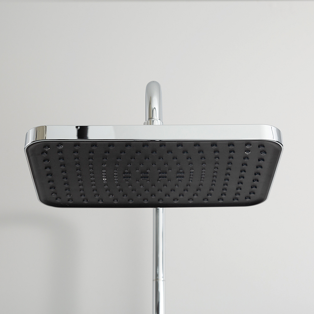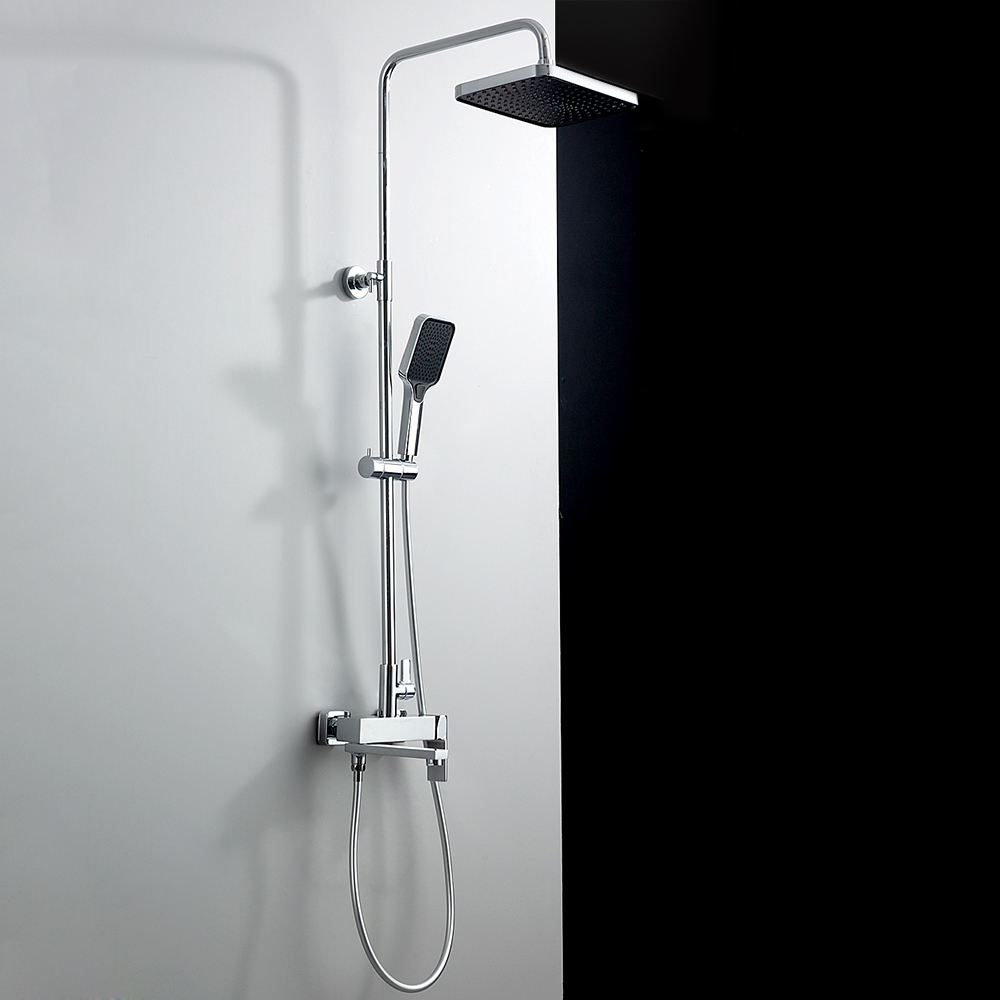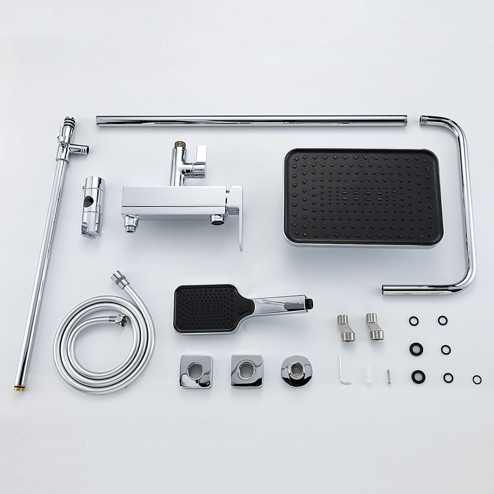 Комплектациясмеситель, душевая стойка, верхний душ, душевая лейка, душевой шланг, держатель для душевой лейки, настенный держатель, отражатели, эксцентрики