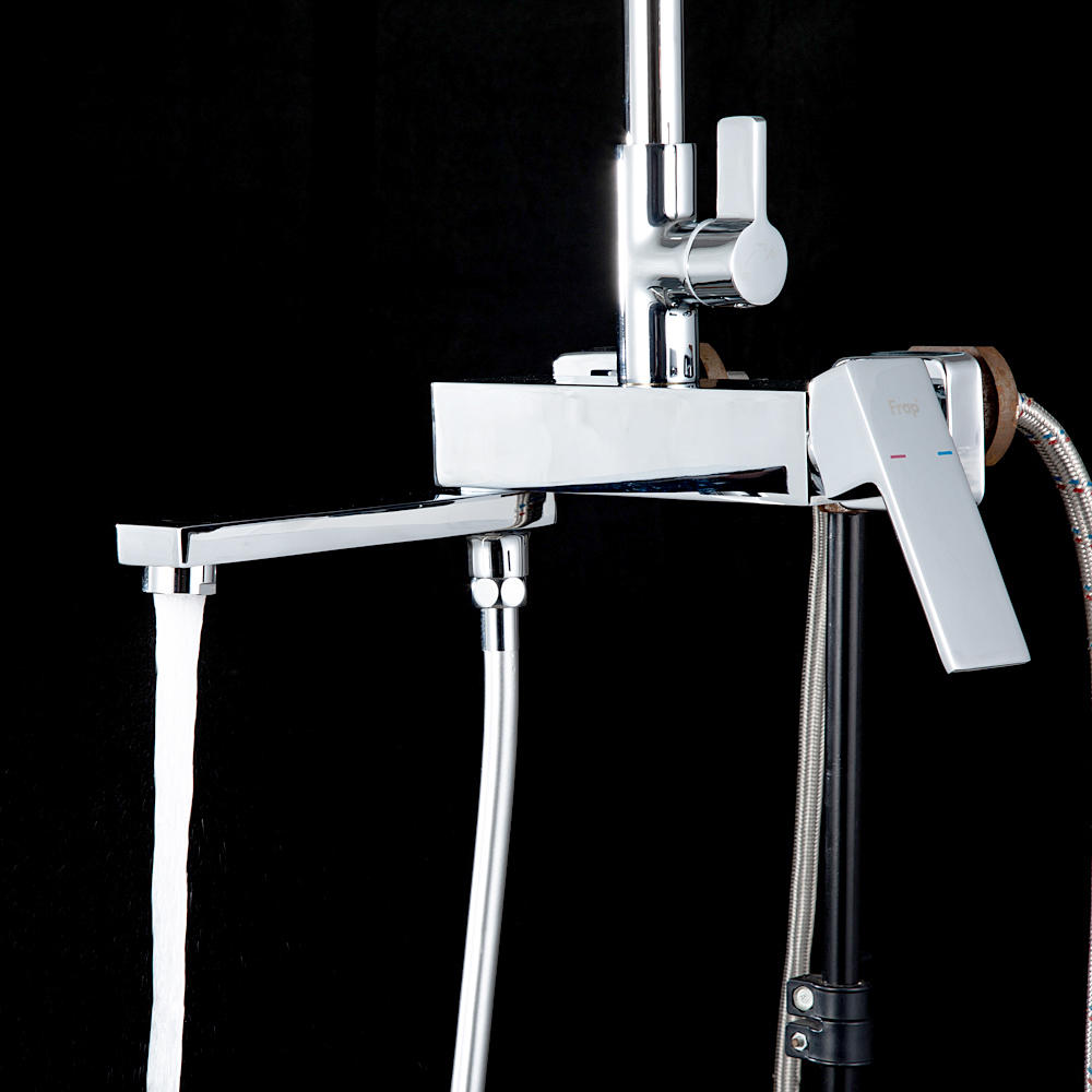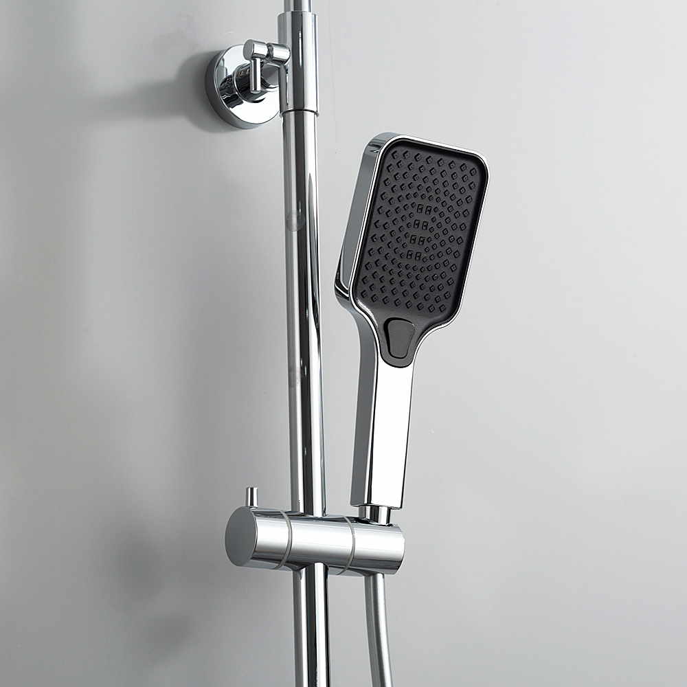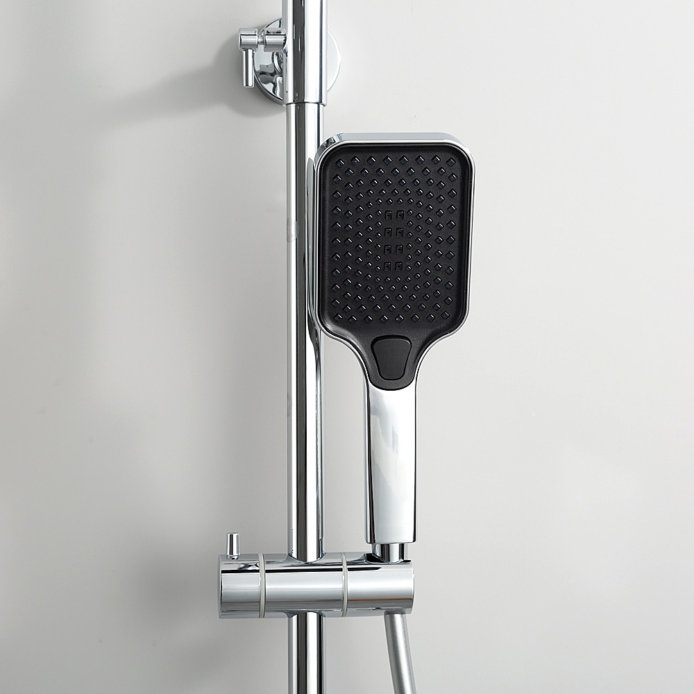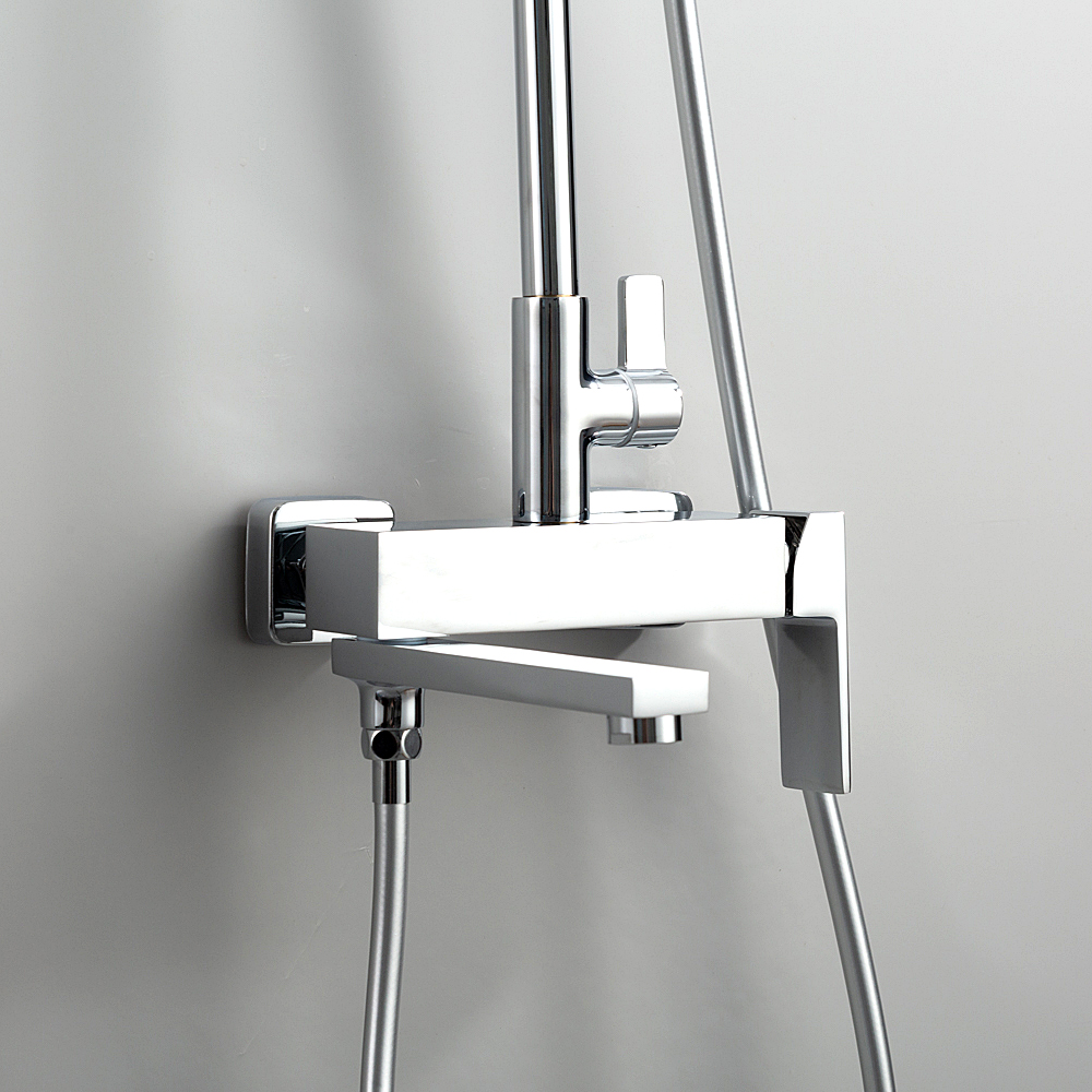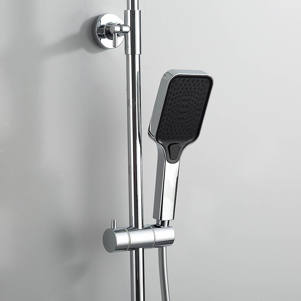 Комплектациясмеситель, душевая стойка, верхний душ, душевая лейка, душевой шланг, держатель для душевой лейки, настенный держатель, отражатели, эксцентрики