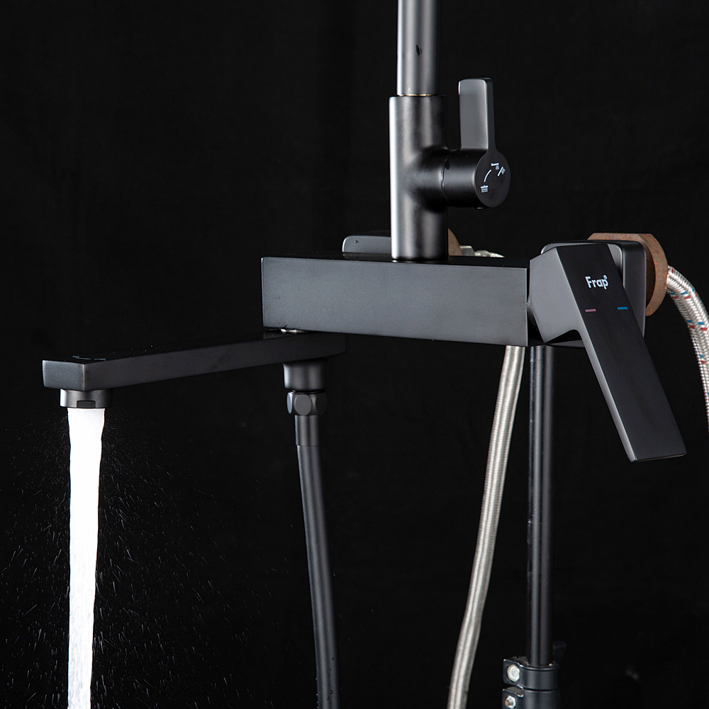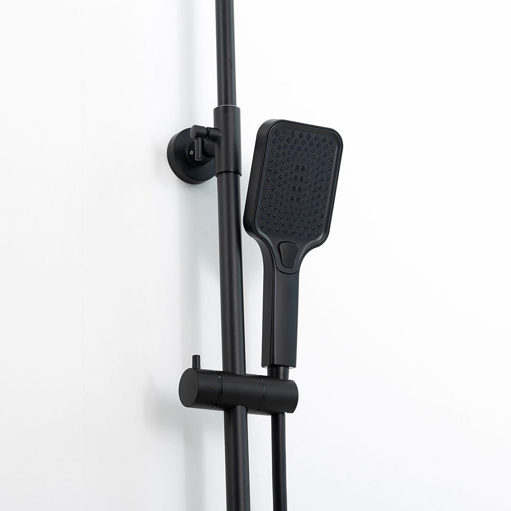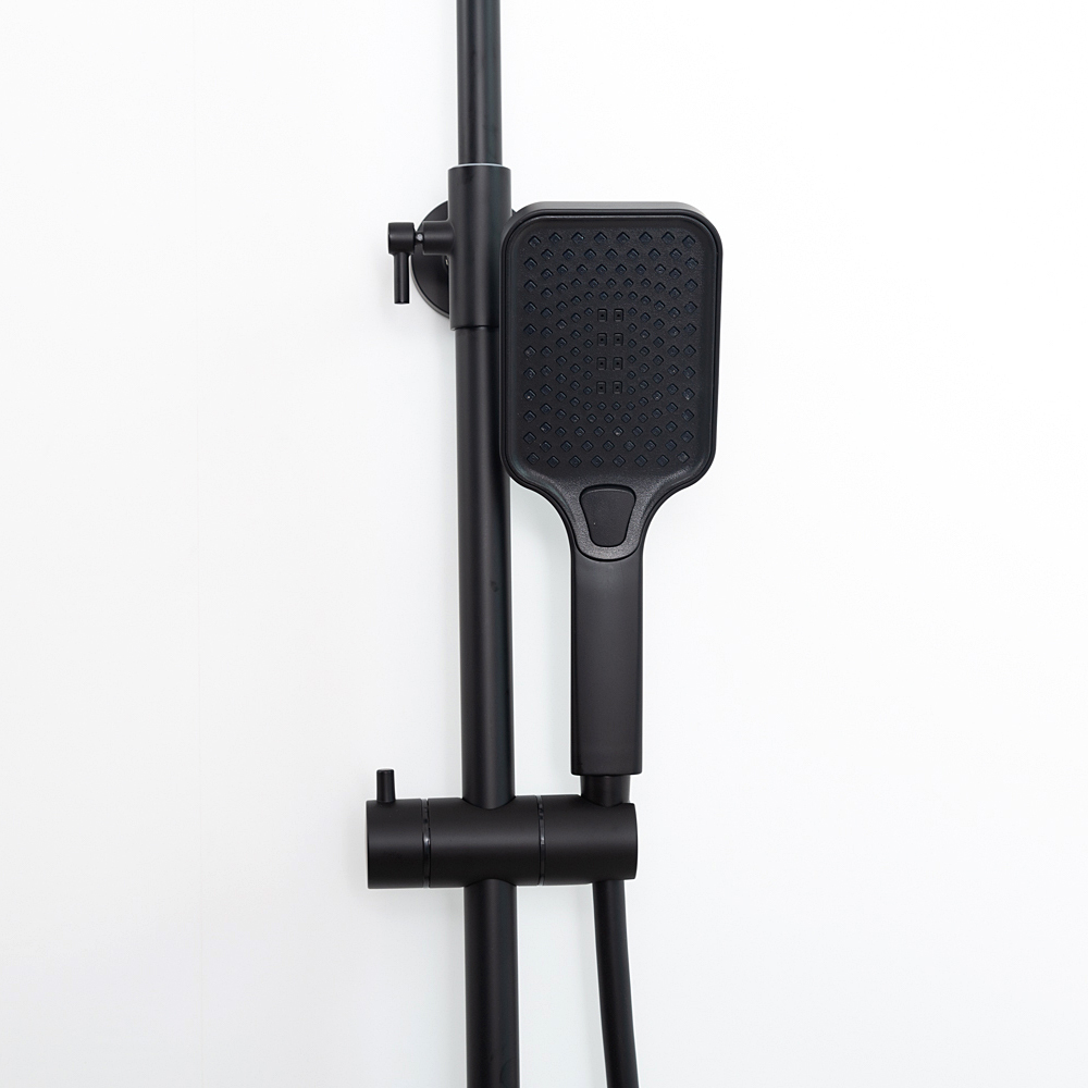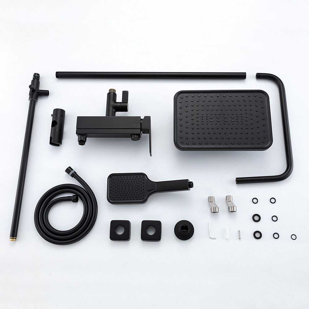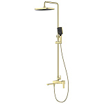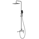 Комплектациясмеситель, душевая стойка, верхний душ, душевая лейка, душевой шланг, держатель для душевой лейки, настенный держатель, отражатели, эксцентрики