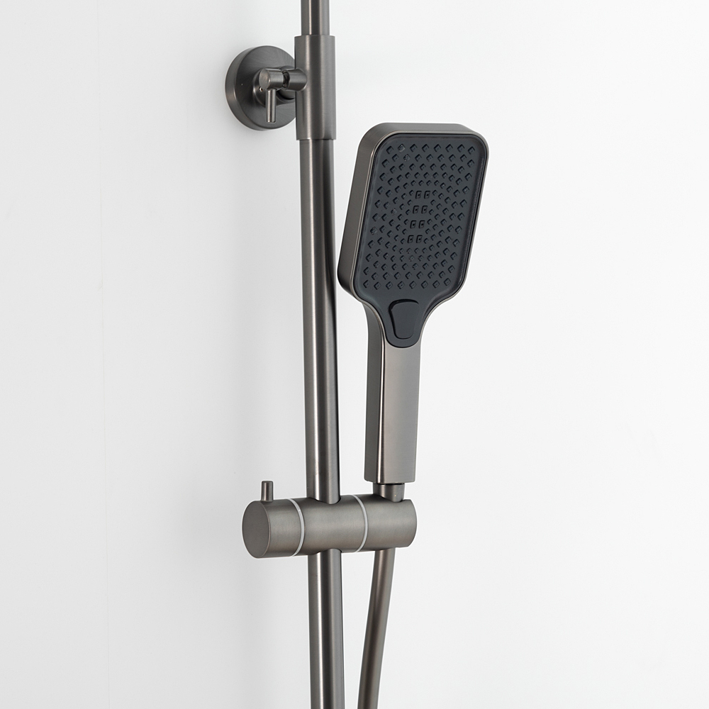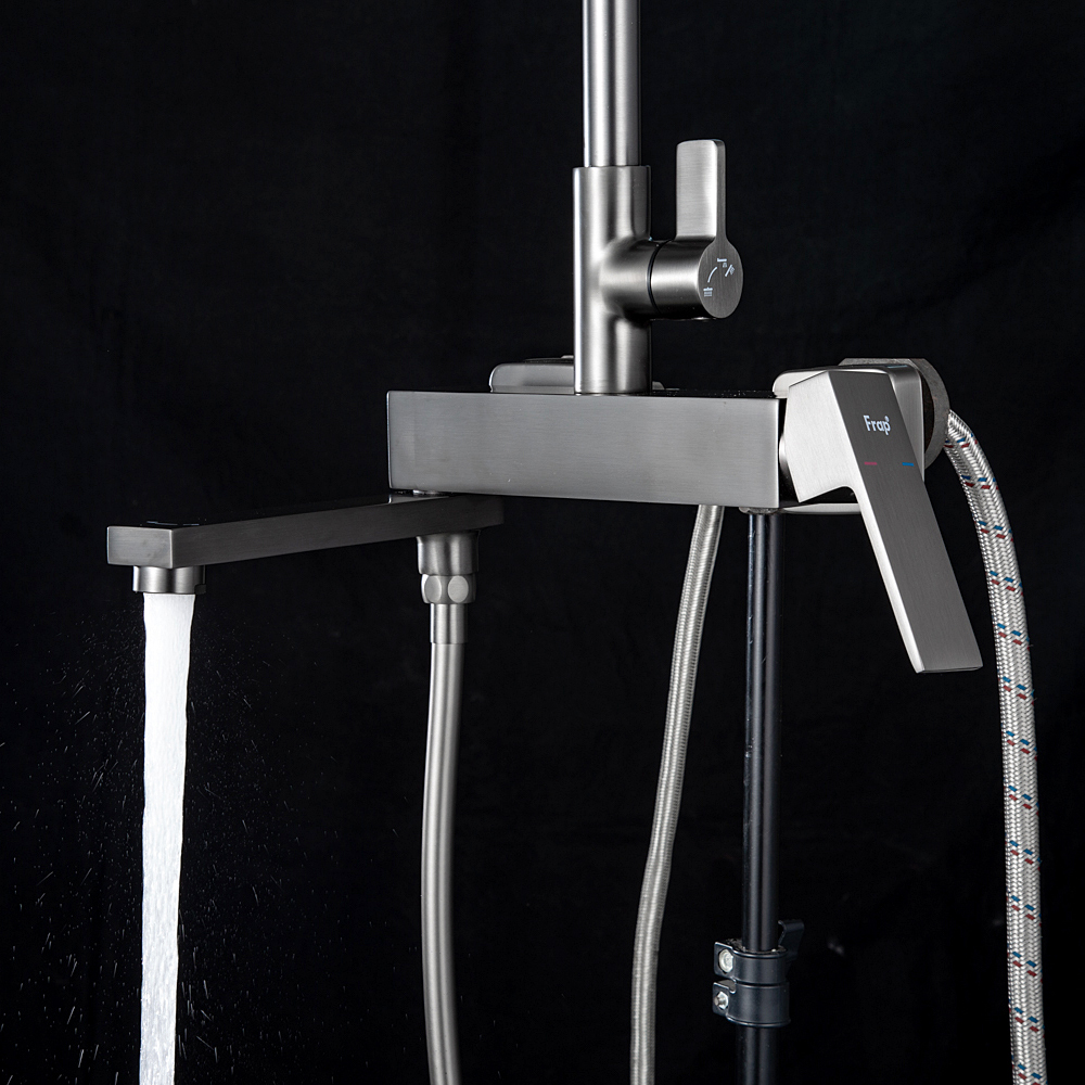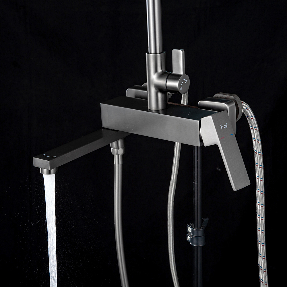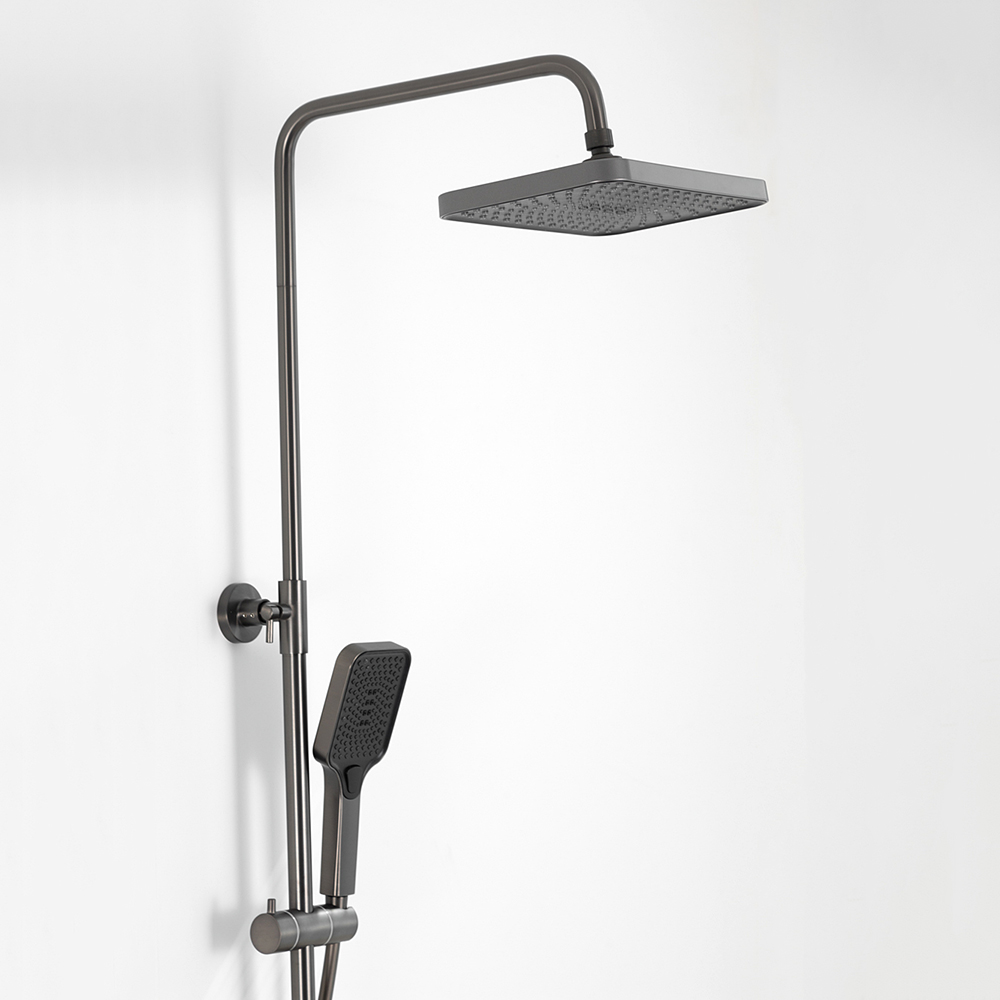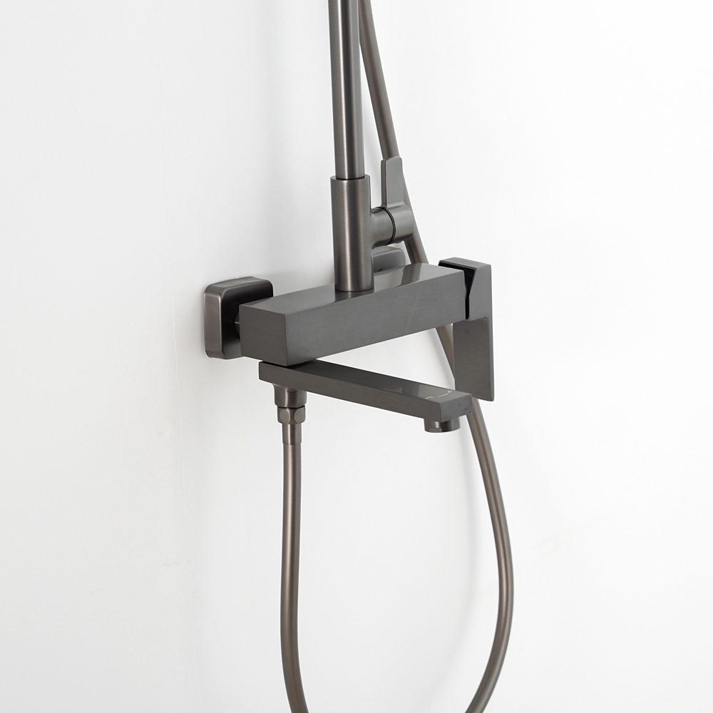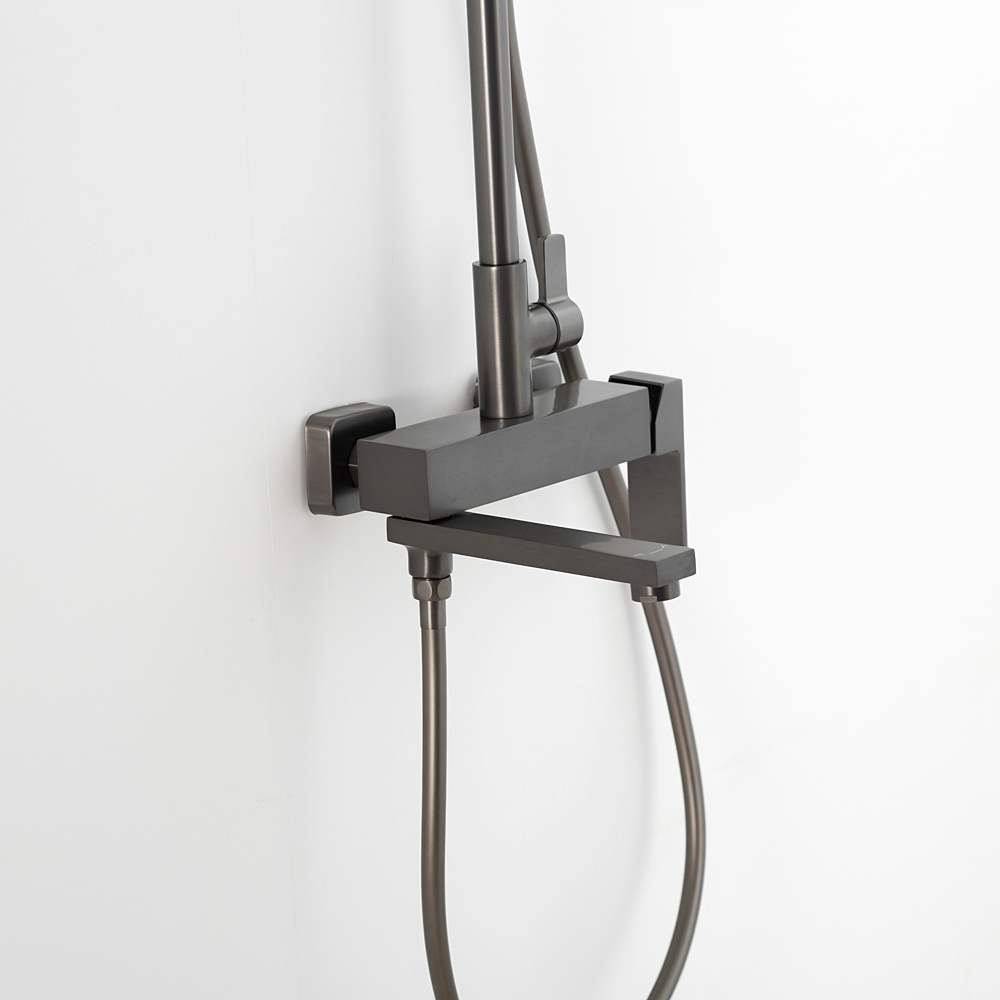 Комплектациясмеситель, душевая стойка, верхний душ, душевая лейка, душевой шланг, держатель для душевой лейки, настенный держатель, отражатели, эксцентрики