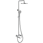Комплектациясмеситель, душевая стойка, верхний душ, душевая лейка, душевой шланг, держатель для душевой лейки, настенный держатель, отражатели, эксцентрики