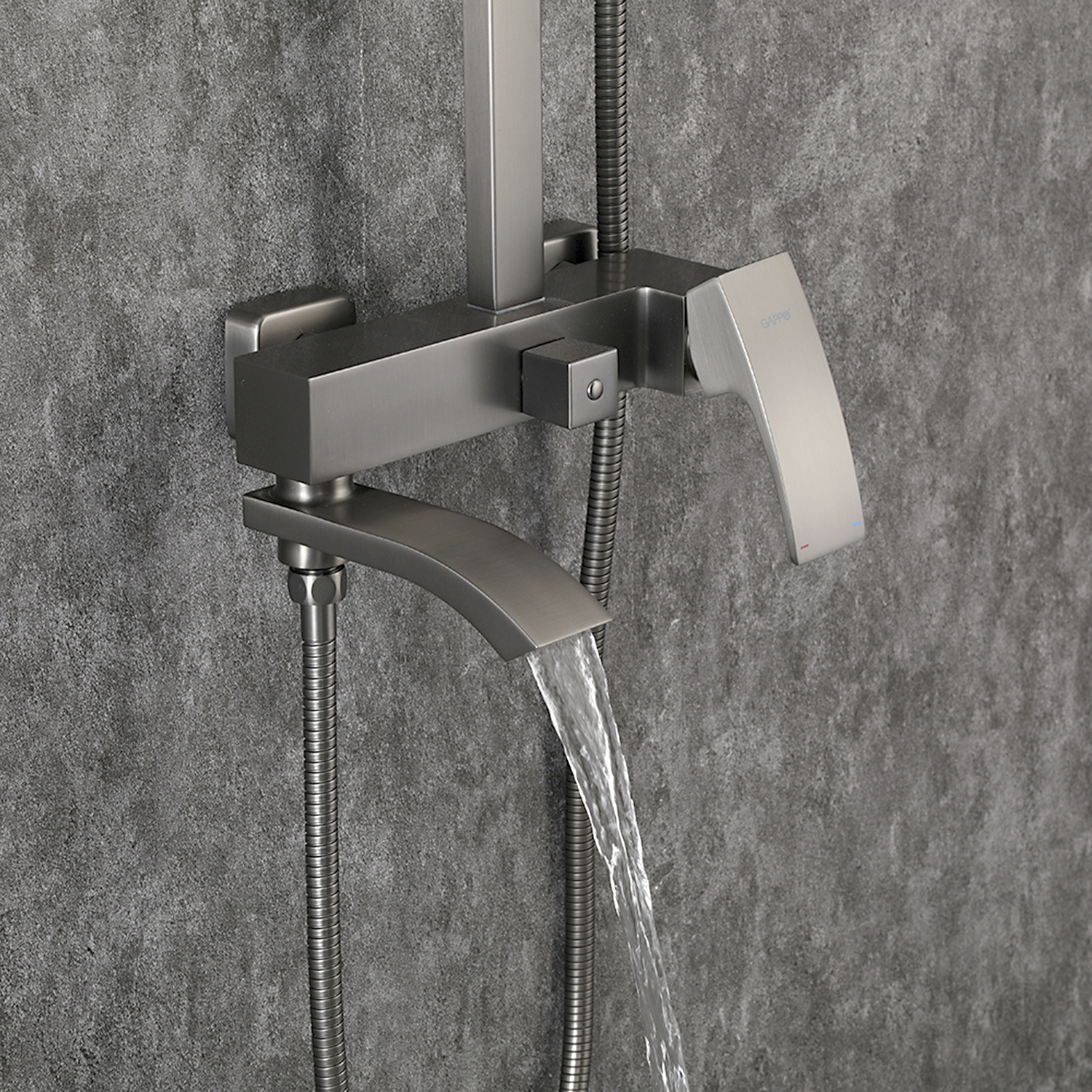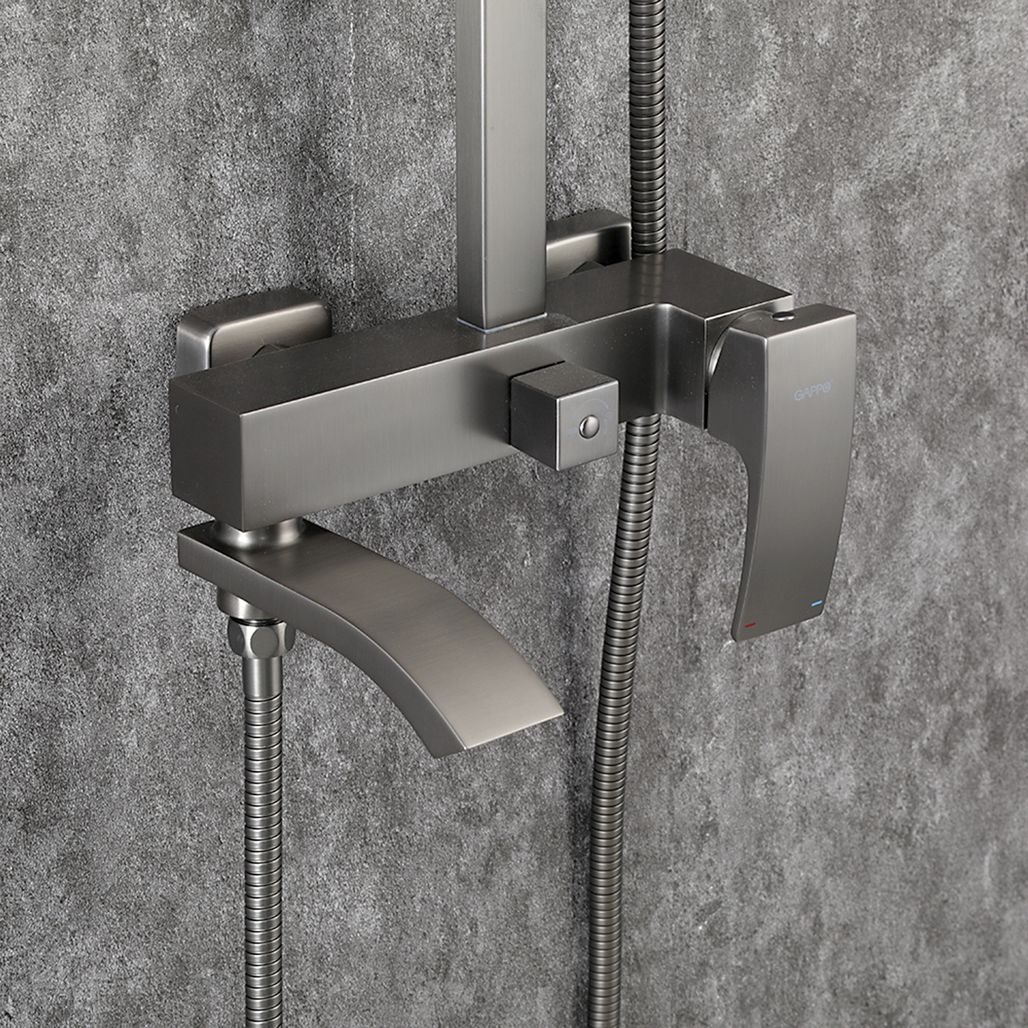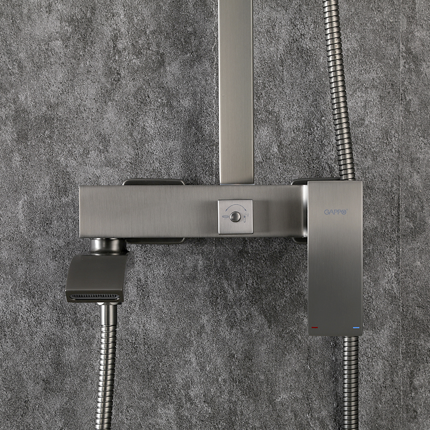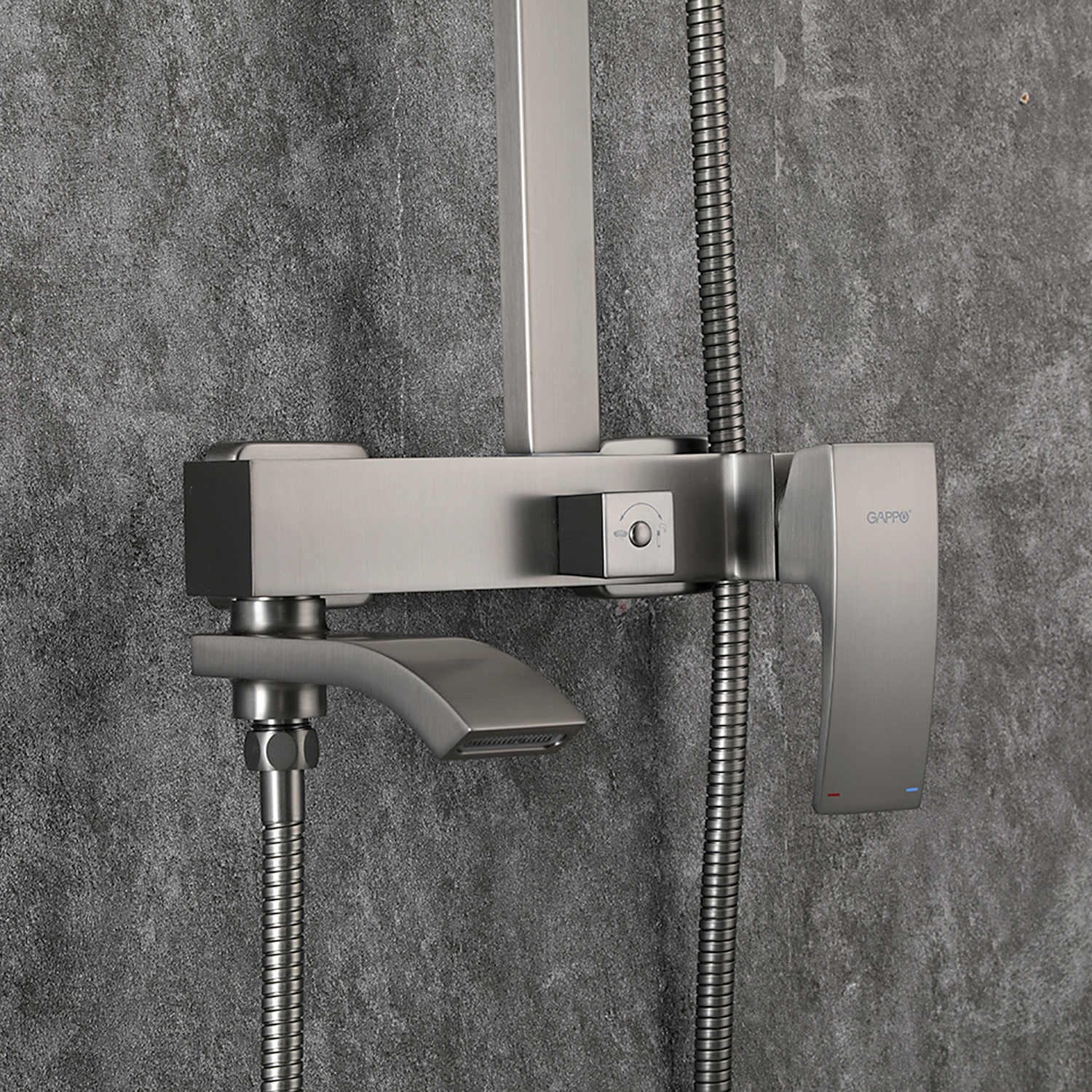 Комплектациясмеситель, душевая стойка, верхний душ, душевая лейка, душевой шланг, держатель для душевой лейки, отражатели, эксцентрики