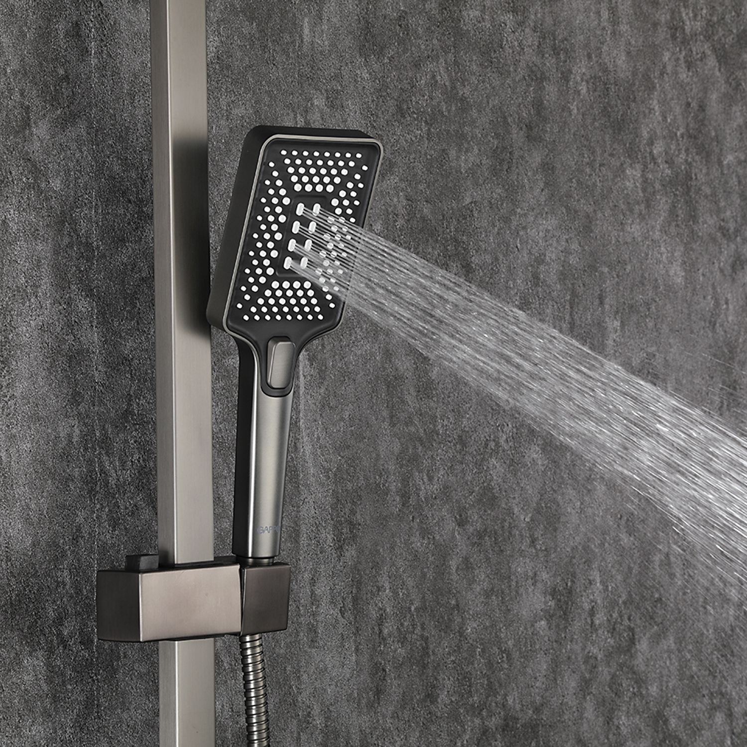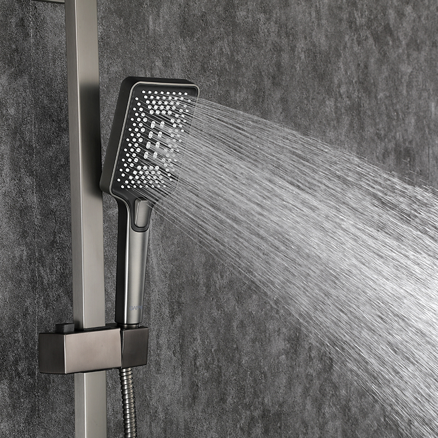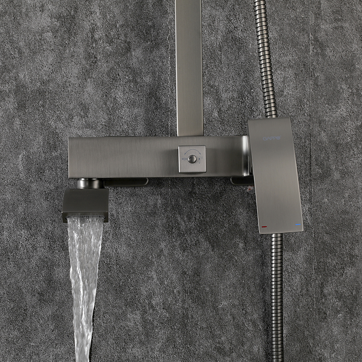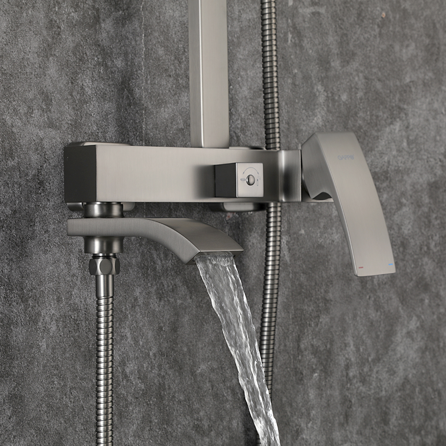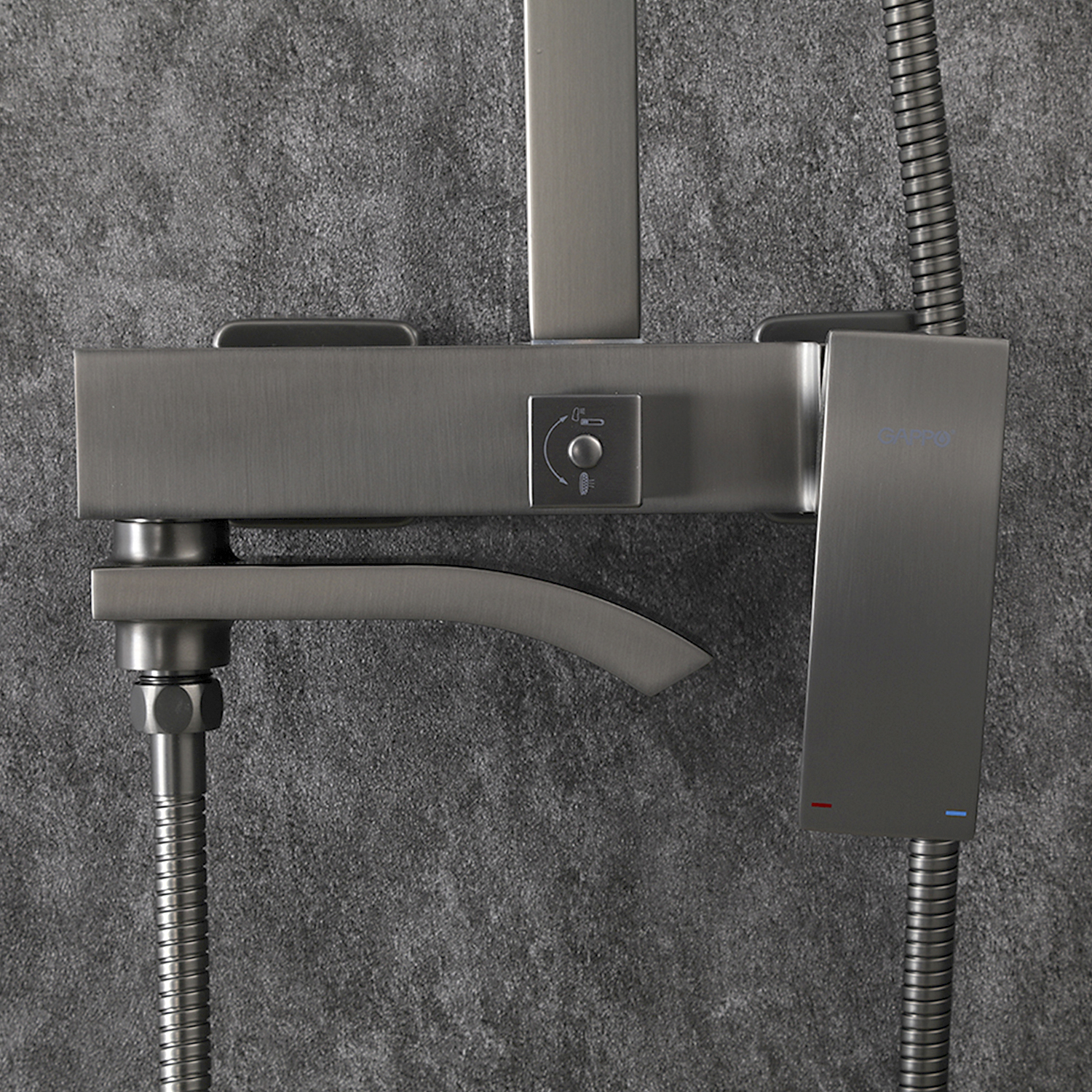 Комплектациясмеситель, душевая стойка, верхний душ, душевая лейка, душевой шланг, держатель для душевой лейки, отражатели, эксцентрики