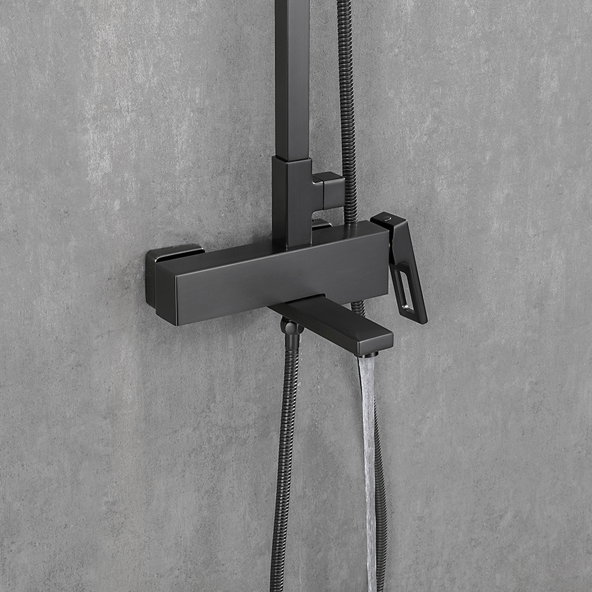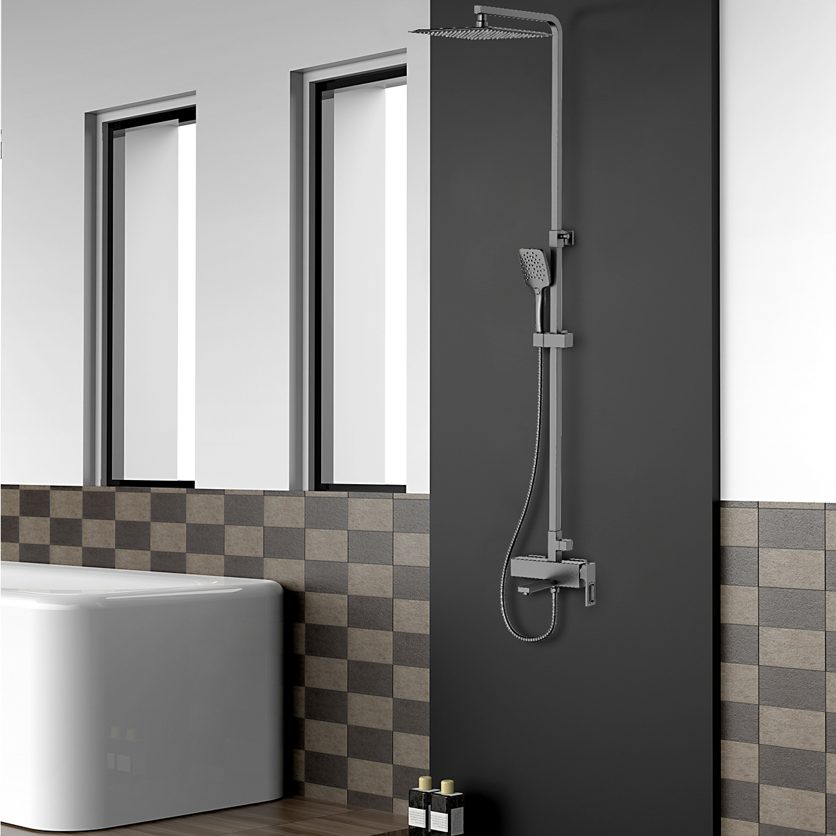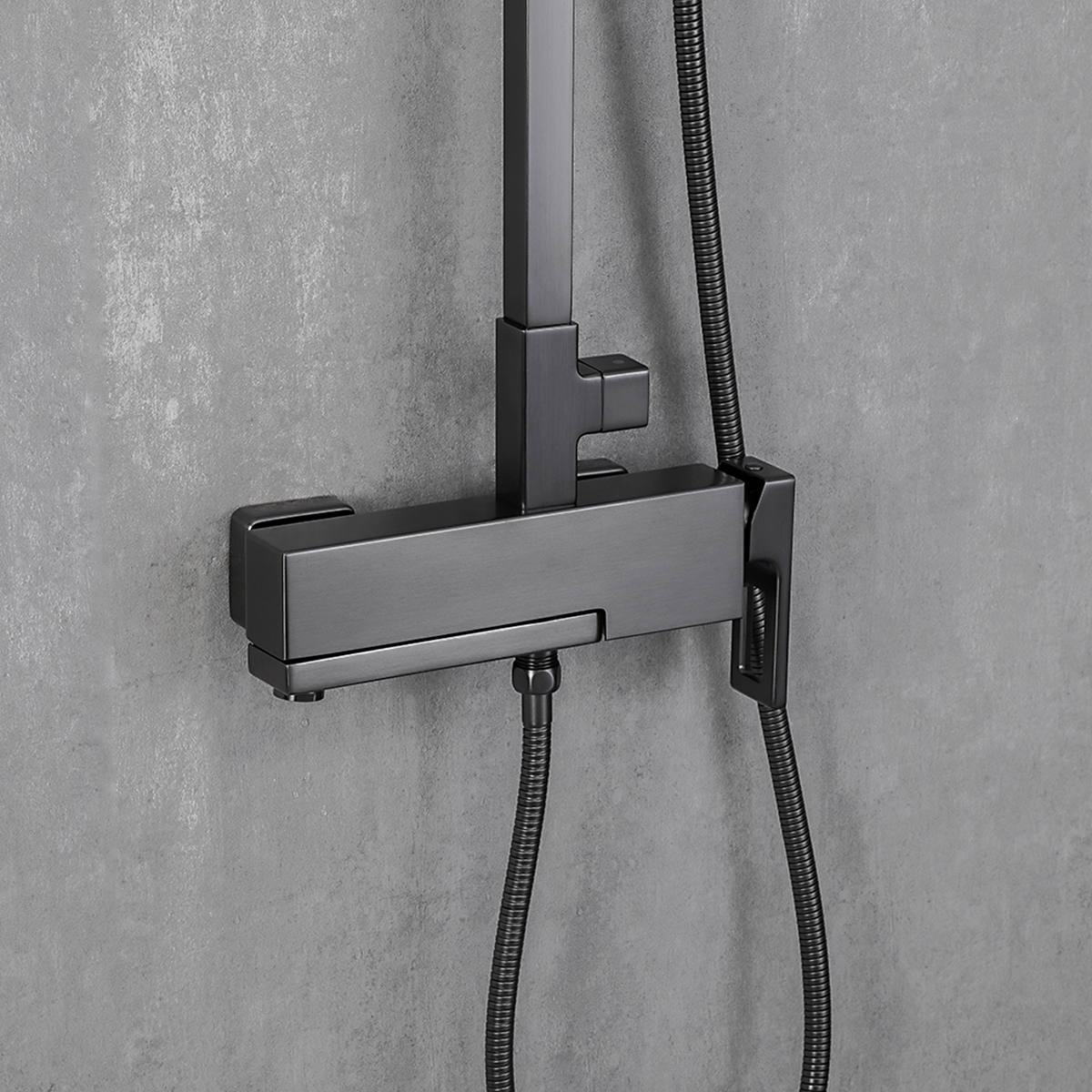 Комплектациясмеситель, душевая стойка, верхний душ, душевая лейка, душевой шланг, держатель для душевой лейки, настенный держатель, отражатели, эксцентрики