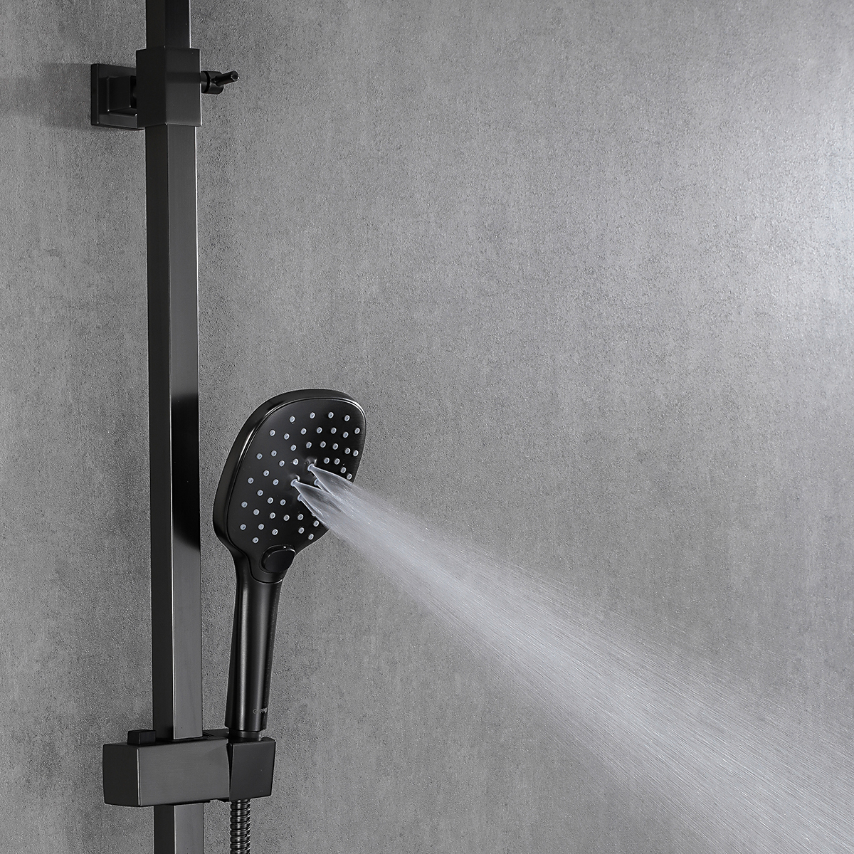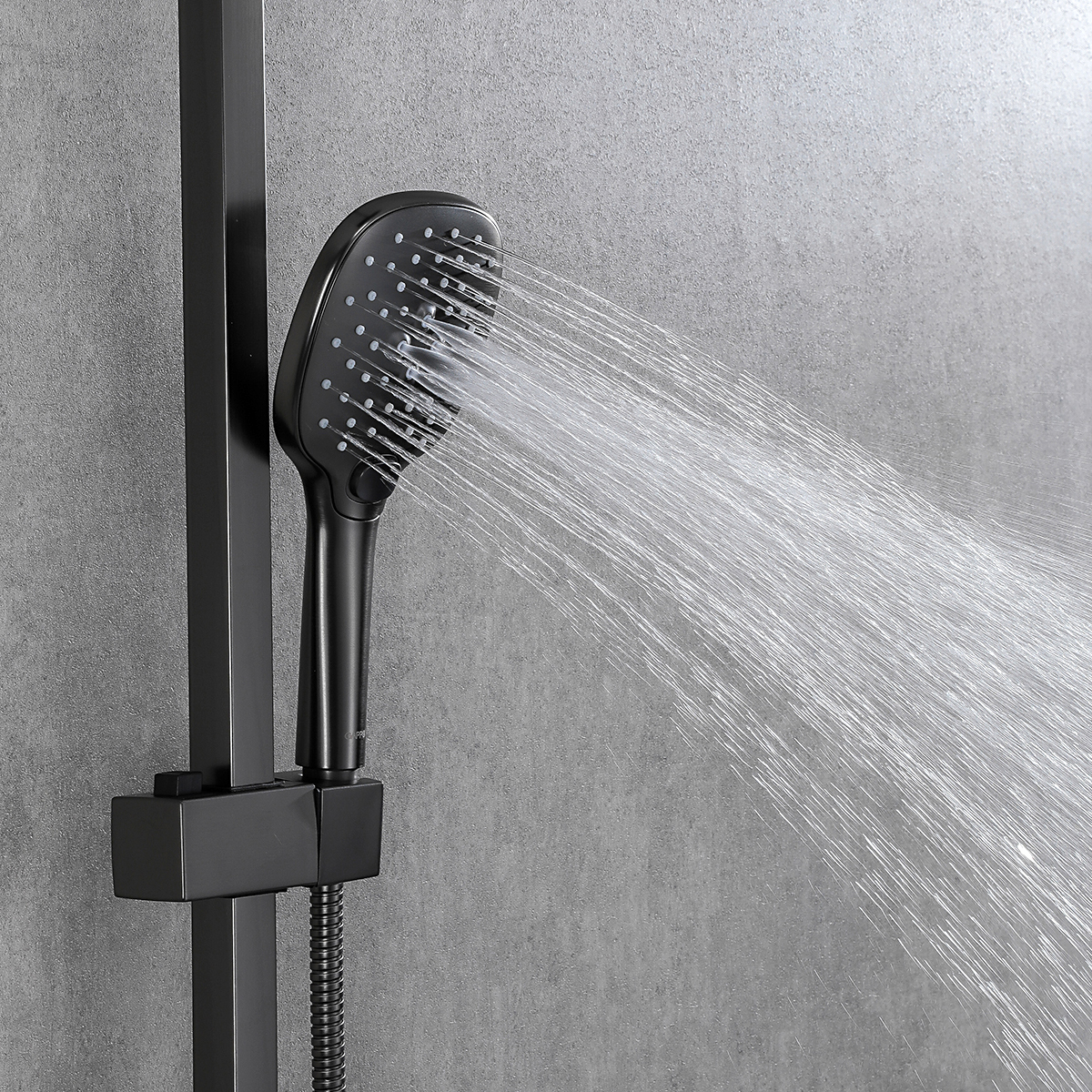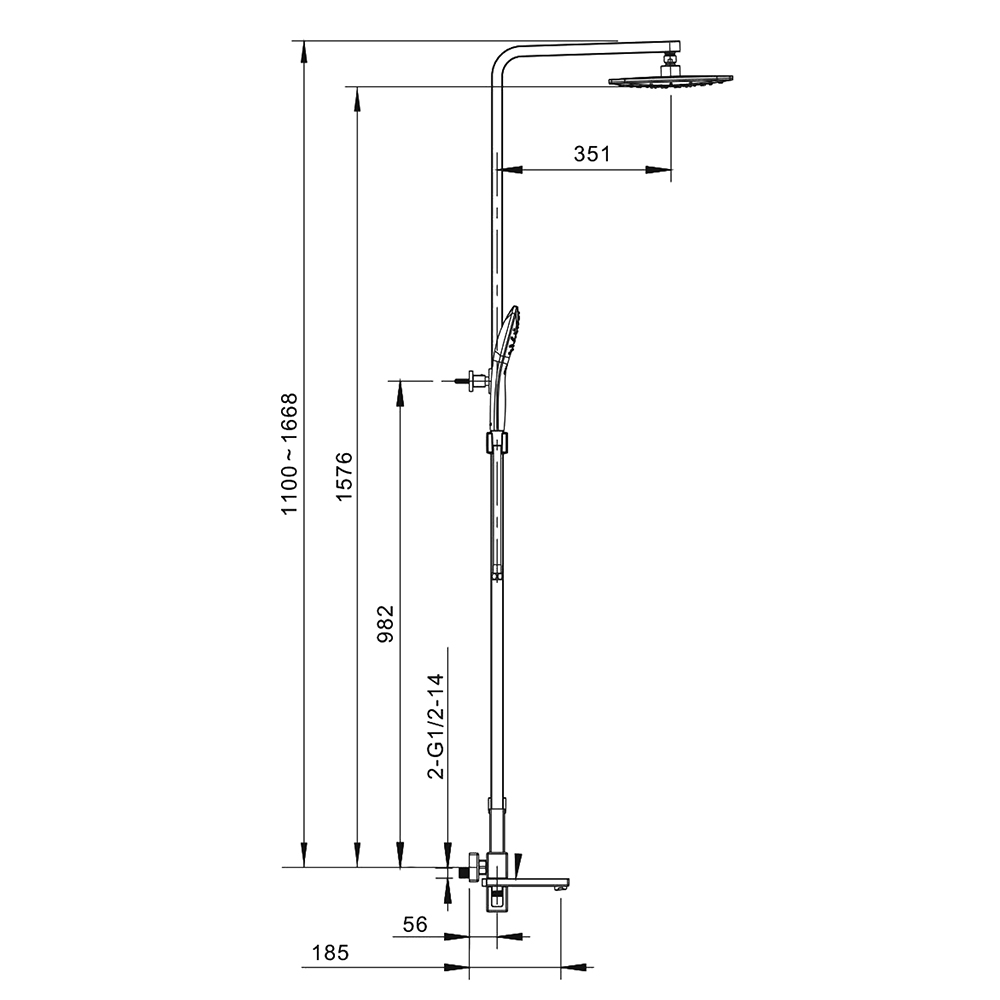Комплектациясмеситель, душевая стойка, верхний душ, душевая лейка, душевой шланг, держатель для душевой лейки, настенный держатель, отражатели, эксцентрики
