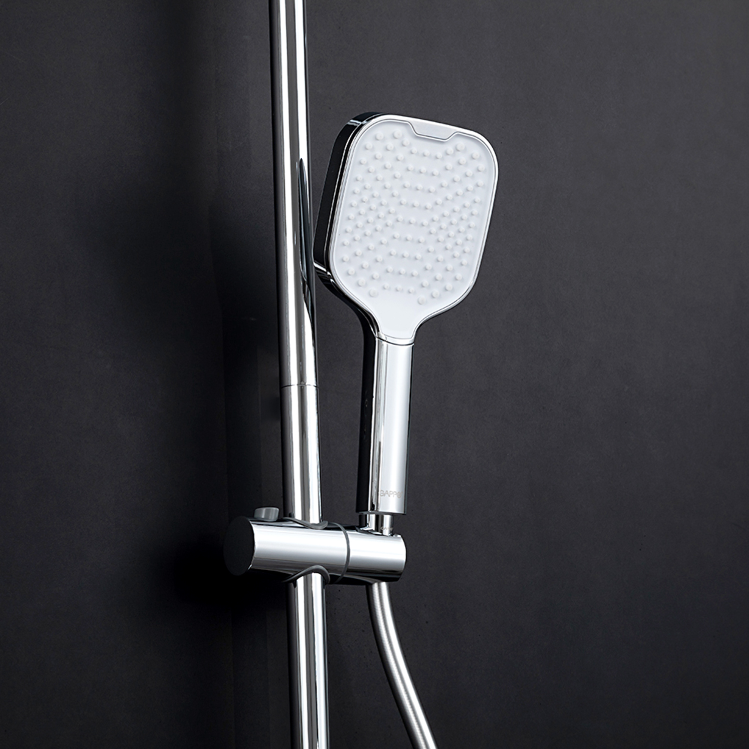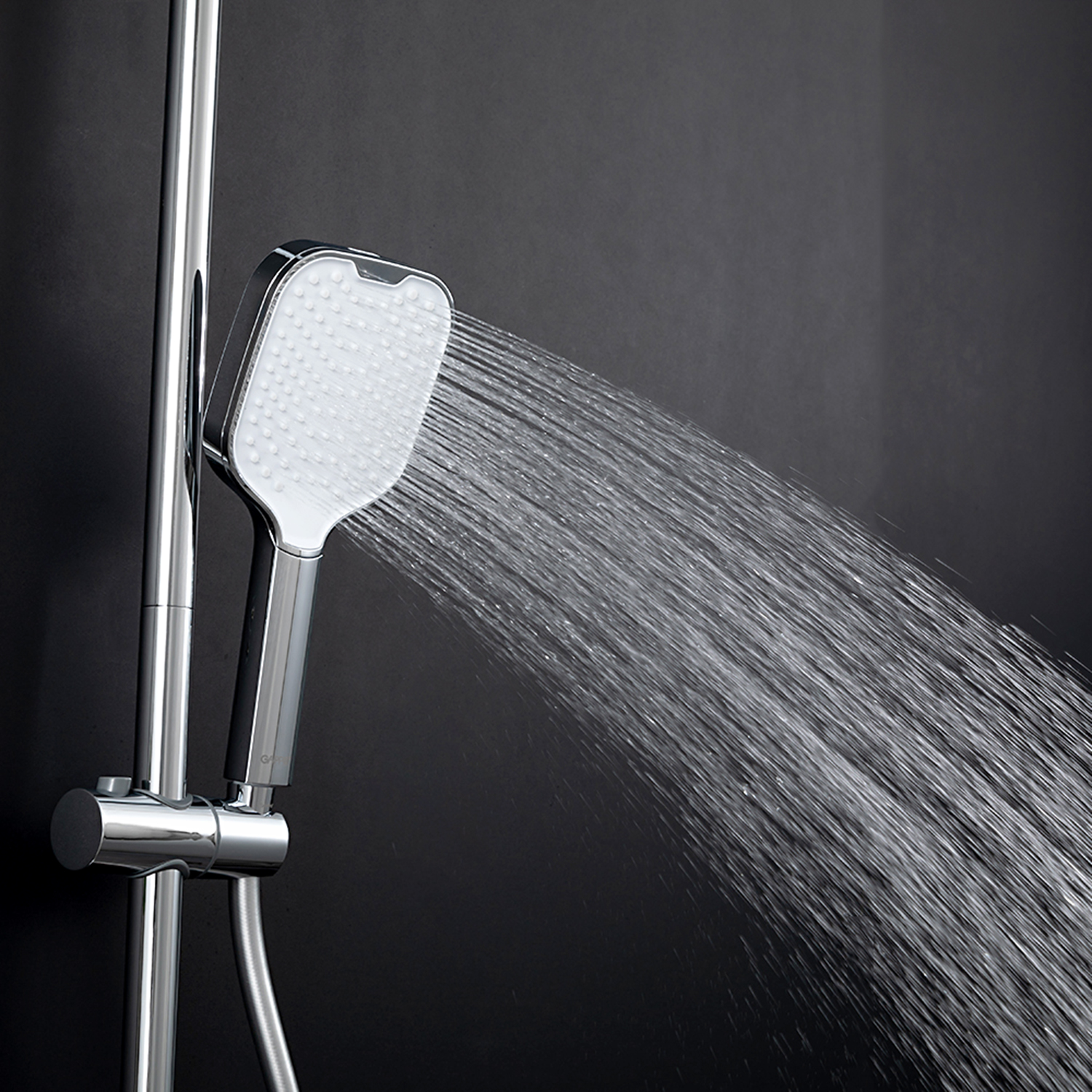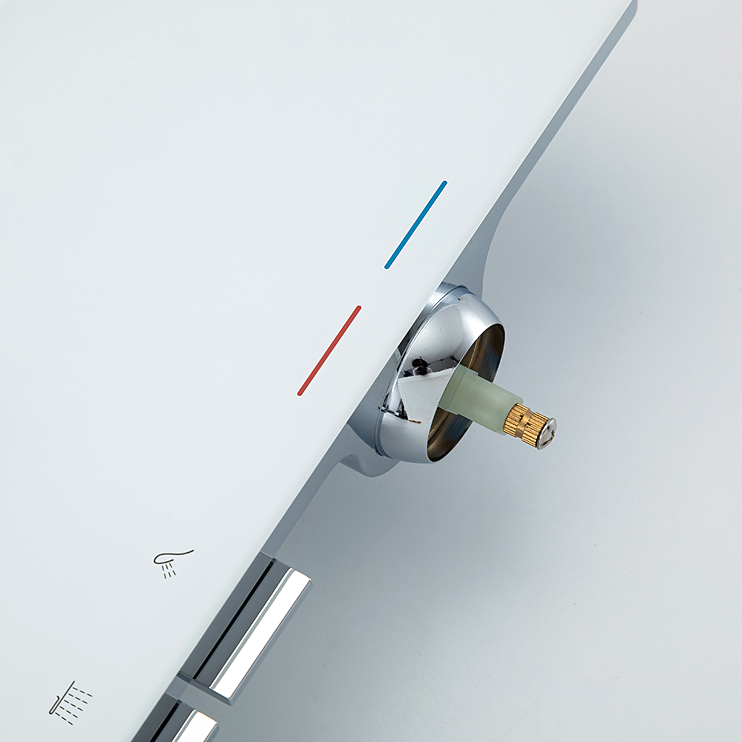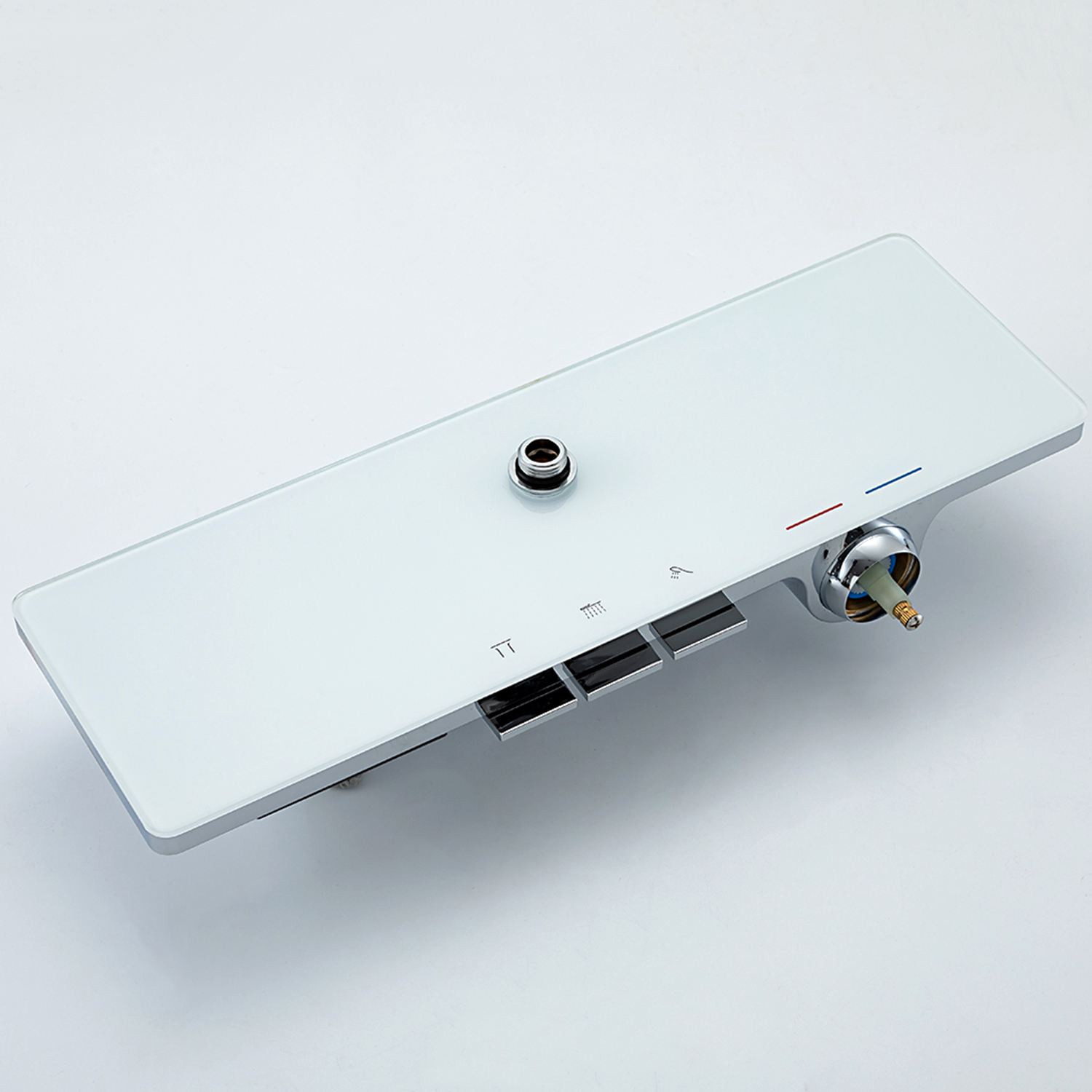 ХарактеристикиМатериал: полка-пластик, верхняя часть полки – стекло / форсунки душевой лейки и верхнего душа – силикон.
