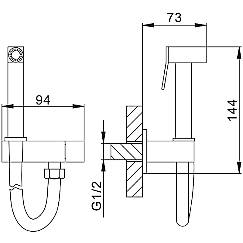 Комплектациязапорный кран, держатель лейки, душевой шланг, гигиеническая лейка