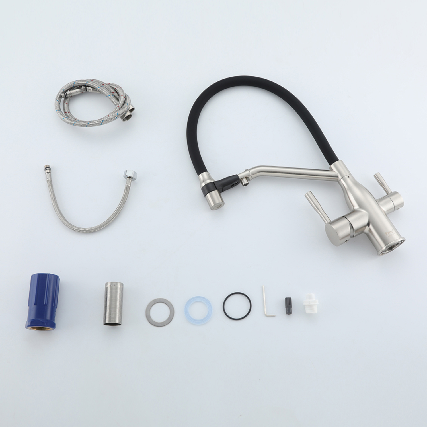 Комплектация товара Смеситель для кухни с гибким изливом Frap F4397-5 зависит от конкретной поставки и может меняться поставщиком без предварительного уведомления!