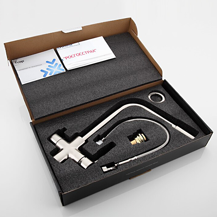 Комплектация товара Смеситель для кухни со встроенным фильтром (краном) под питьевую воду Frap F4352-5 зависит от конкретной поставки и может меняться поставщиком без предварительного уведомления!